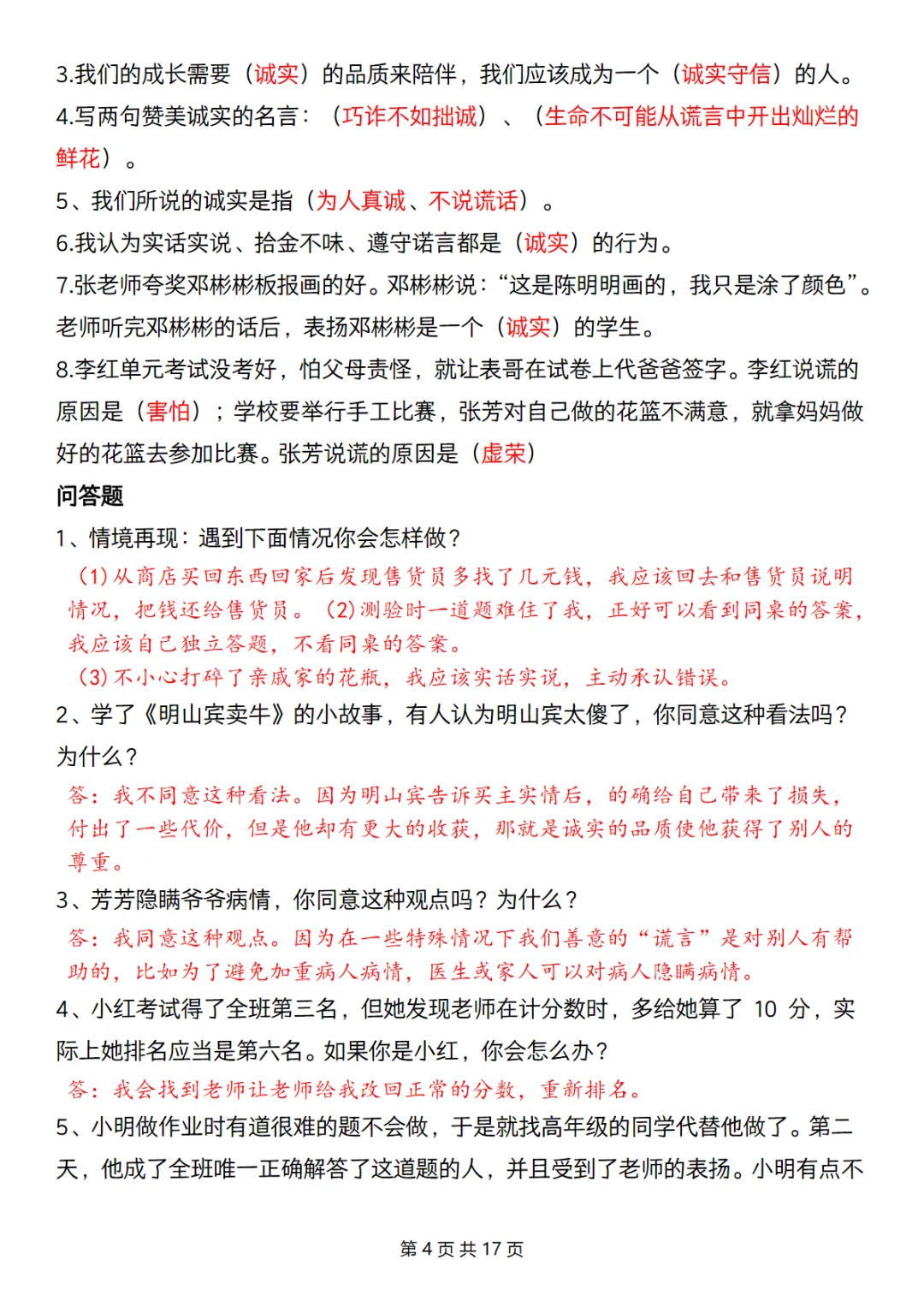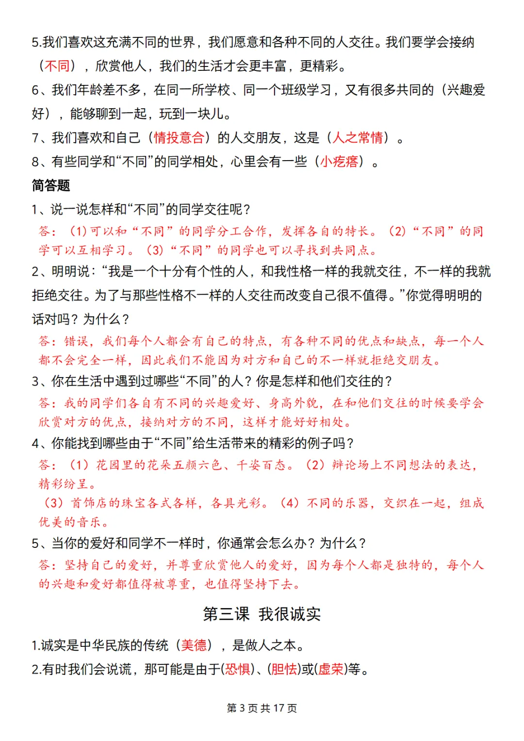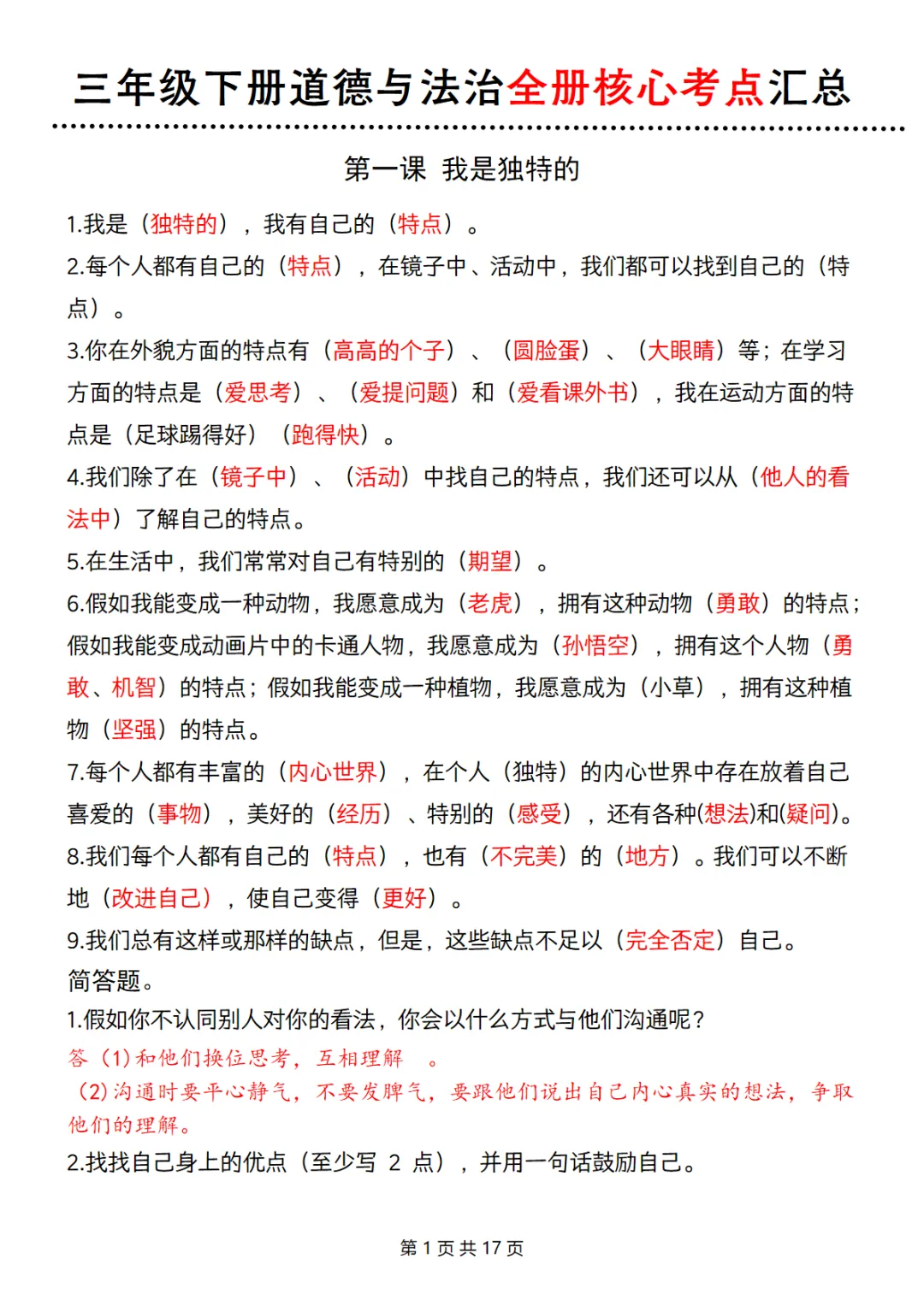 三下册《道德与法治重点知识点汇总》,PDF电子版,免费下载,可打印