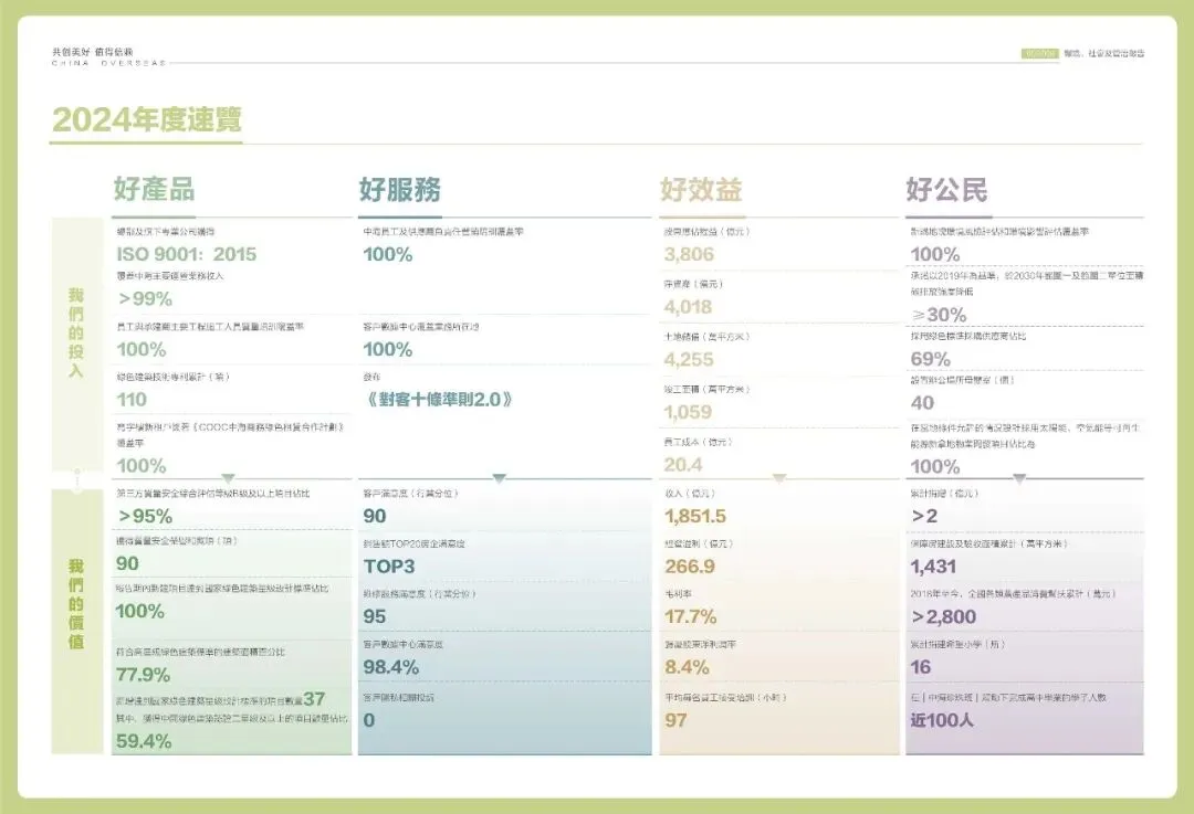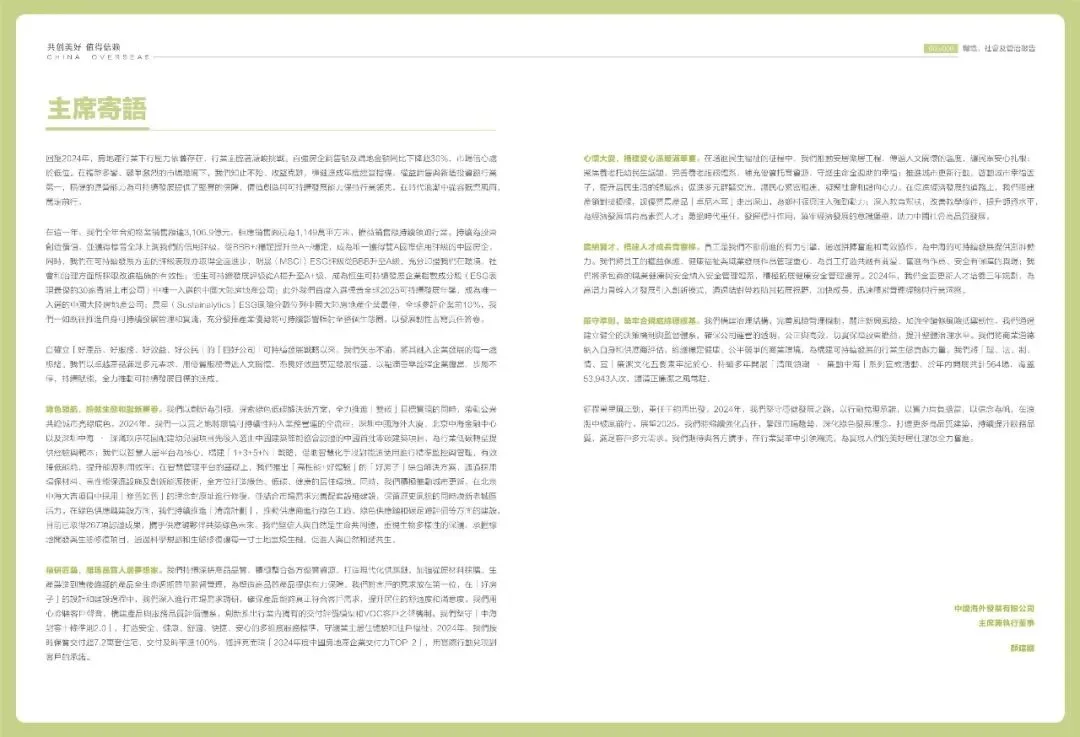 回望2024年,房地產行業下行壓力依舊存在,行業面臨著嚴峻挑戰。百強房企銷售額及購地金額同比下降超30%,市場信心處於低位。在複雜多變、競爭激烈的市場環境下,我們知止不殆、攻堅克難,穩健達成年度經營指標,權益銷售與新增投資額行業第一,穩健的運營能力為可持續發展提供了堅實的保障,價值創造與可持續發展能力保持行業領先,在時代浪潮中從容抵禦風雨,篤定前行。