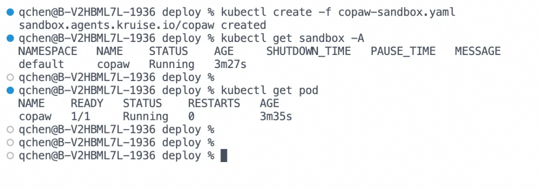 $ kubectl create -f copaw.yamlsandbox.agents.kruise.io/copaw created
