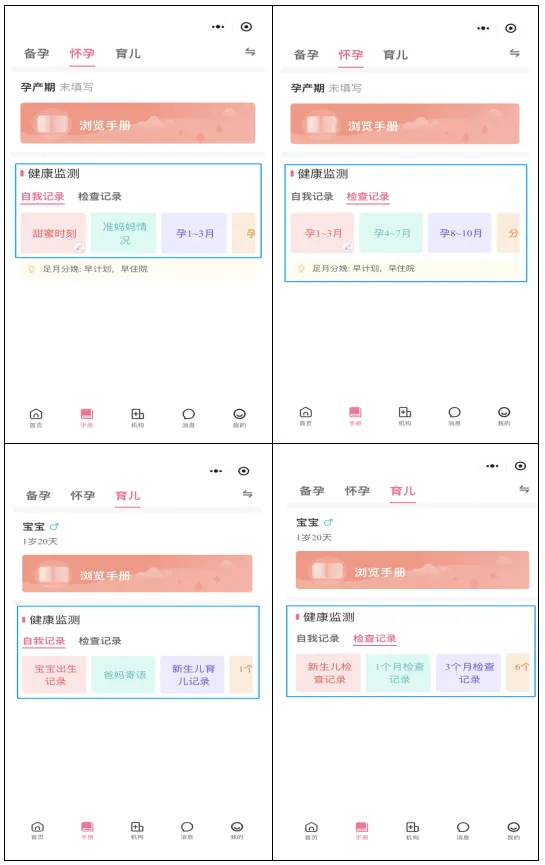 除了浏览手册外,电子版母子健康手册还可以进行体检提醒、疫苗提醒、孕育知识及育儿知识学习、政策学习、监测评估,快去申领您的母子健康手册吧!