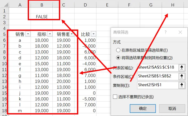 条件区域记得把B1包含在内,表头是空的还是要选的