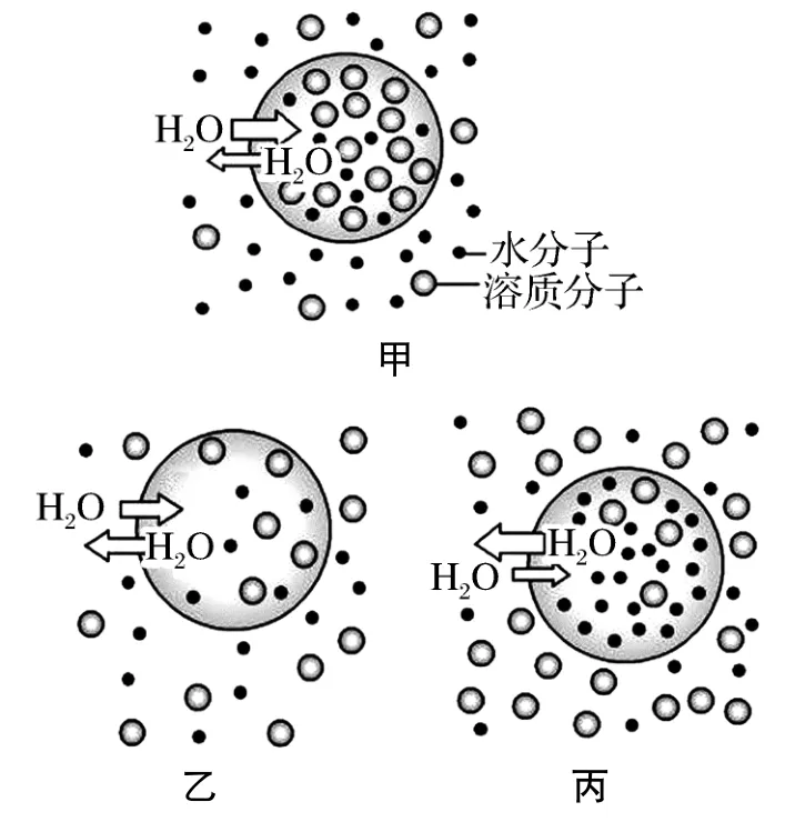 2. 图甲、乙、丙分别是细胞在不同浓度溶液中水分子的跨膜运输示意图(箭头大小代表水分子数的多少)。