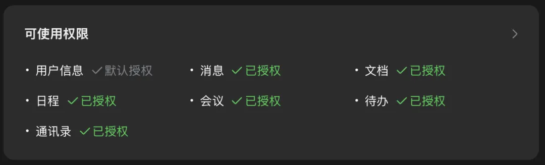 飞书的体验还是一如既往的丝滑,连开放平台自建应用的手动步骤都自动化了,只需安装1个命令、配置2个命令各在网页上点击一次即可。对于主力不用飞书的团队,主要就是加入飞书的客户群、和客户会议,所以我试了这2个场景。效果还是不错的,比如群的“消息数”、和会议的“在线时长”,我在UI上也不知道怎样能看到这些信息。