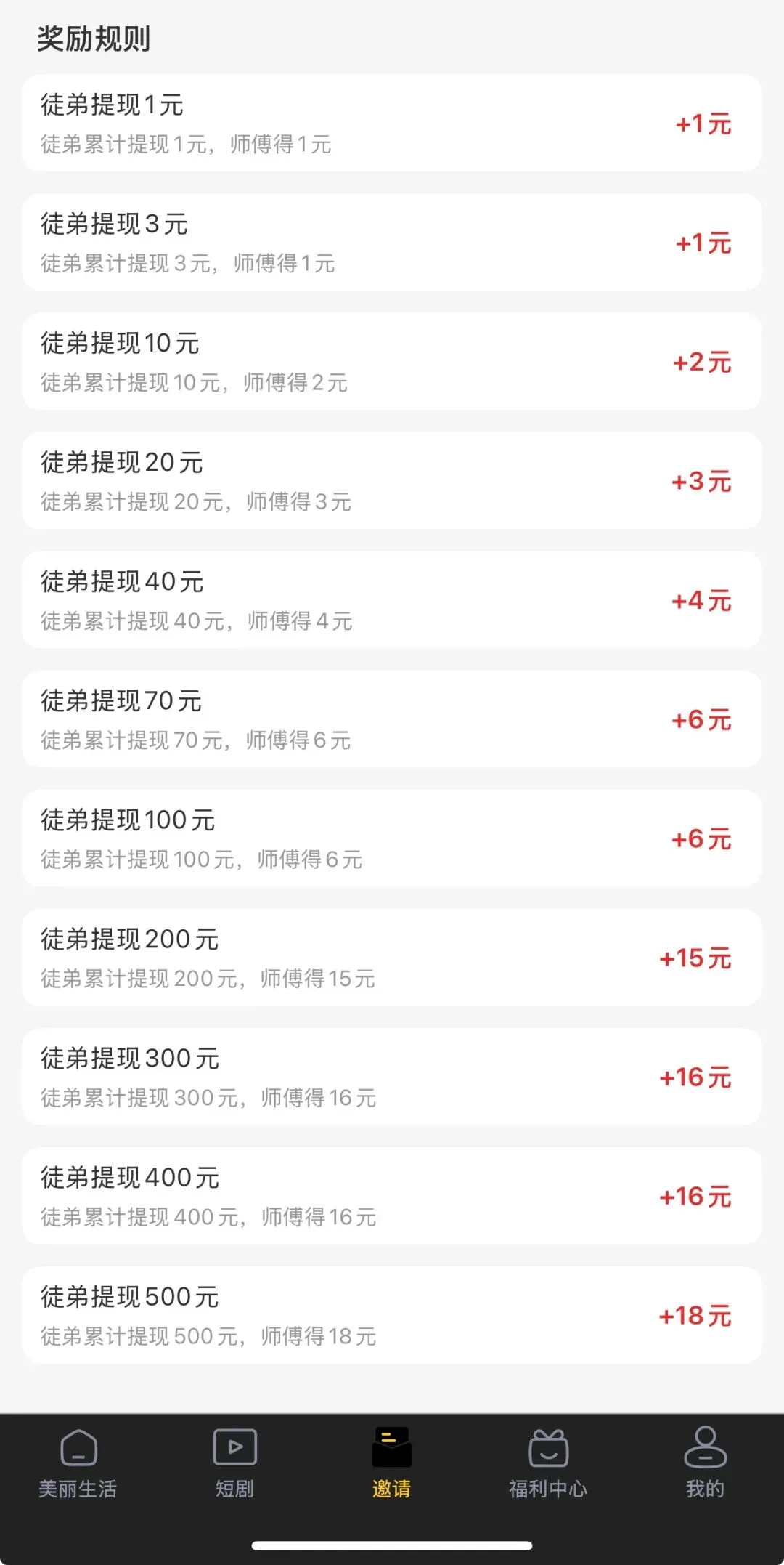 之前推给小伙伴玩得苹果安卓app更新了,更新之后我觉得收益变高了。可以这样理解,推一个人玩,只要他提现1元,你也可以得1元,推得多,获得越多。