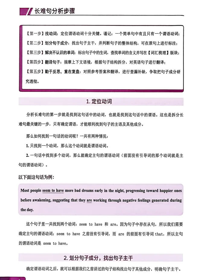 宝宝们!!这本书最绝的就是三步解剖法+保姆级讲解!!晓燕老师用“找主干—划修饰—调语序”拆穿长难句,每个句子都标注重点词汇+参考译文+语法点详解,定语从句、非谓语动词全整得明明白白!!还送视频讲解,笑着笑着就学会了!!🥳