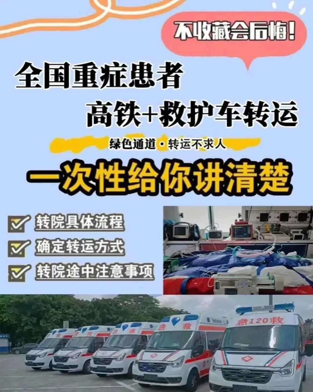我们提供专业的救护车出租服务,涵盖长途转运、跨省转运、市内转运病人服务。专注于为新生儿、骨折病人、重症病人、危重病人提供优质转运服务,也积极协助行动不便者进行复查、转院、转诊。同时,承接跨省转运病人回家、遗体运送回家服务,每一项服务都有专业医护团队支撑,确保安全可靠,预约电话 4009962227,下文看适配设备。