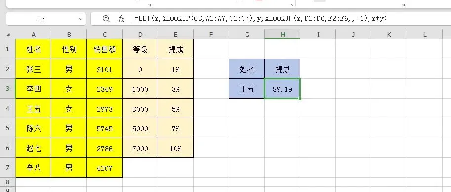 现有数据源销售额,需根据销售额来计算每个人的提成。