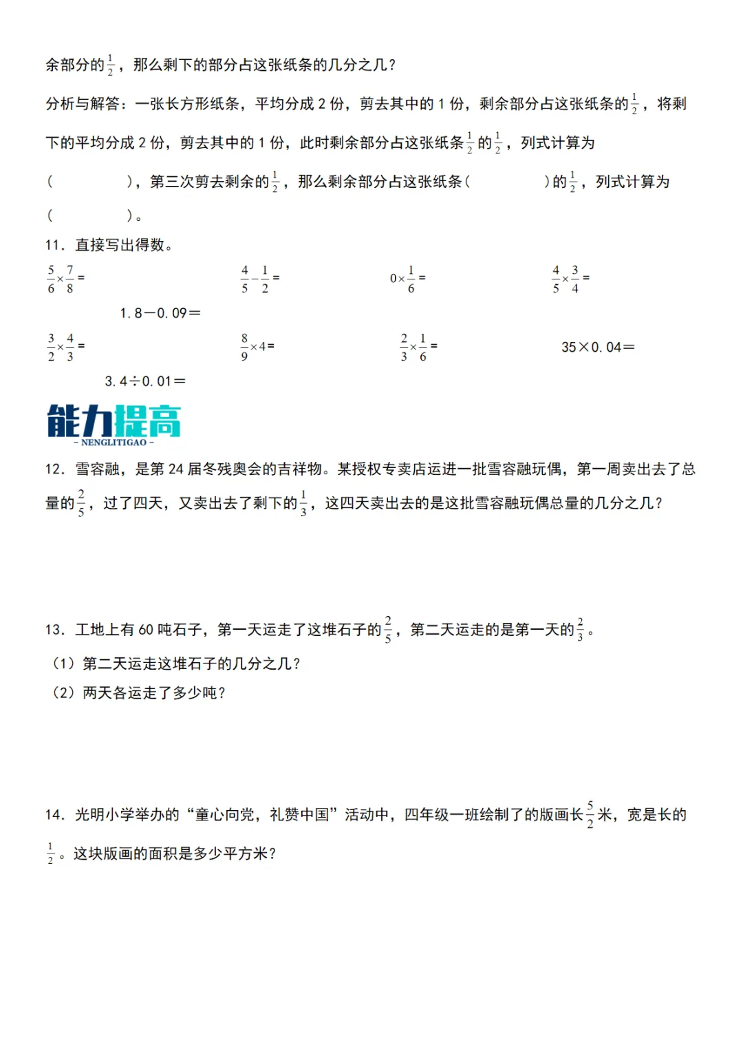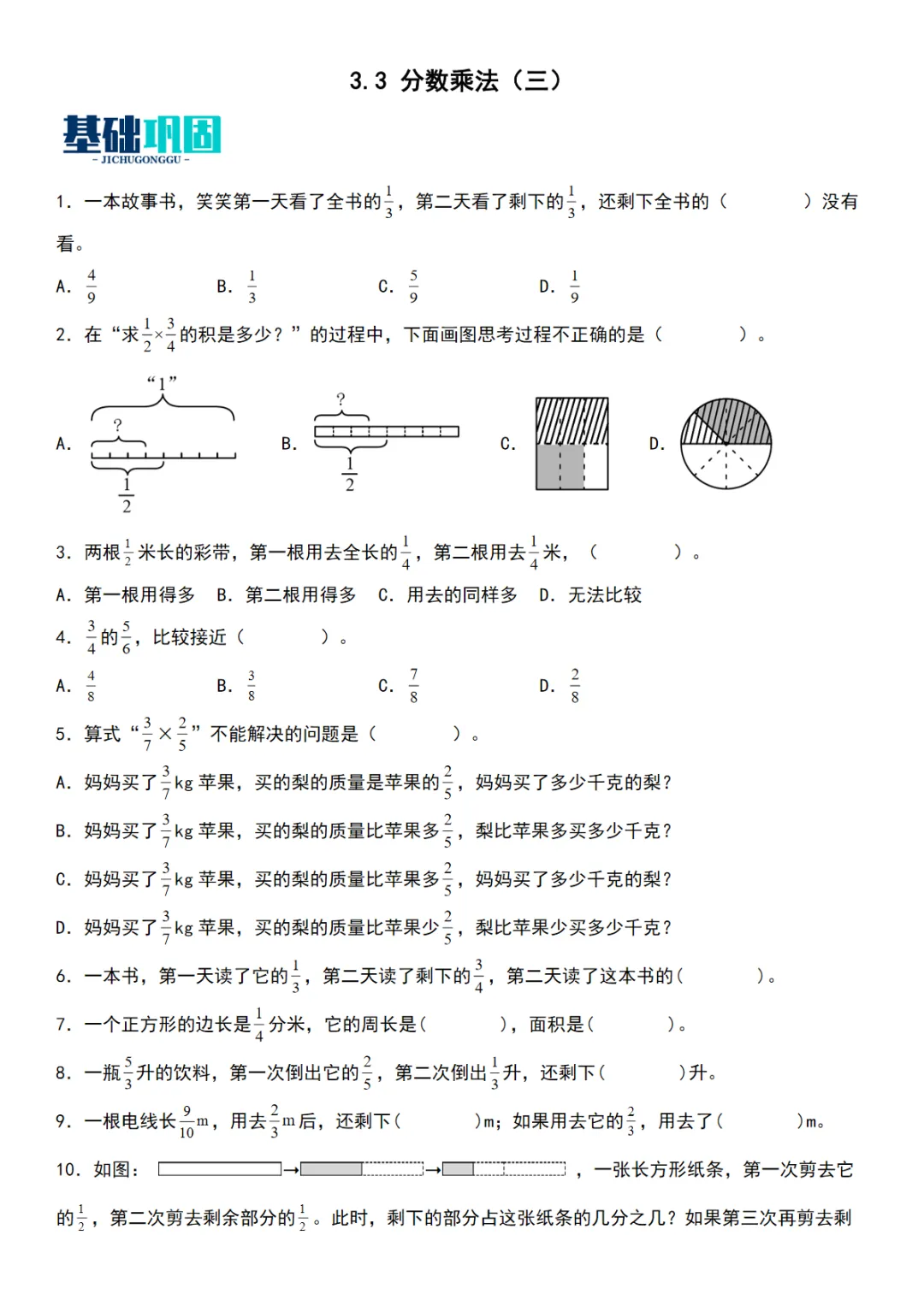 【免费下载】3.3 分数乘法(三) (分层作业)【北师】五下数学分层作业,可打印
