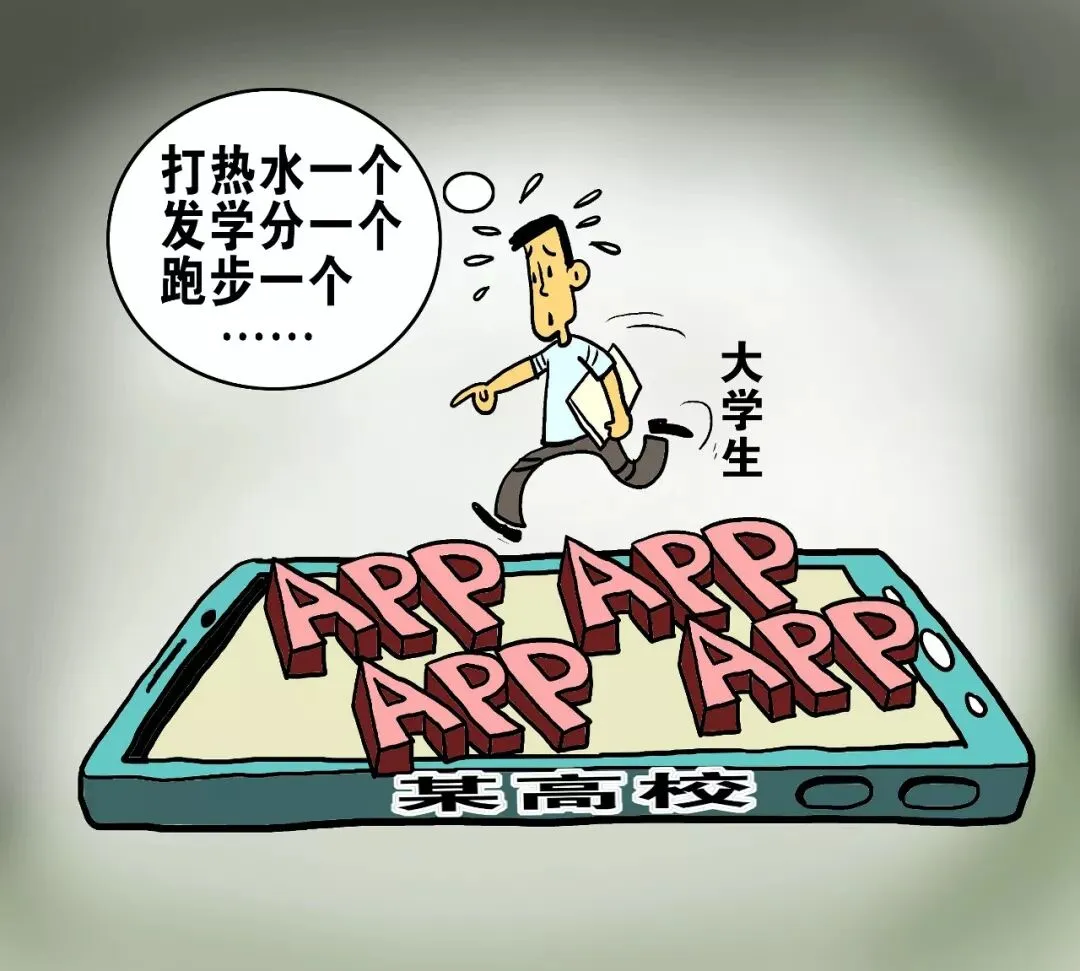 在一些高校,原本为方便师生、提高效率的信息化手段在实际管理和运营中却出现了过度倾向:一个个打着“智能便捷”“强制使用”“学分挂钩”旗号的手机APP逐渐编织成一张网,将许多大学生裹挟其中:有的粗制滥造,存在不少漏洞;有的视学生市场为“唐僧肉”,投放各类奇葩广告;有的僵化管理,让学生自行承担损失……