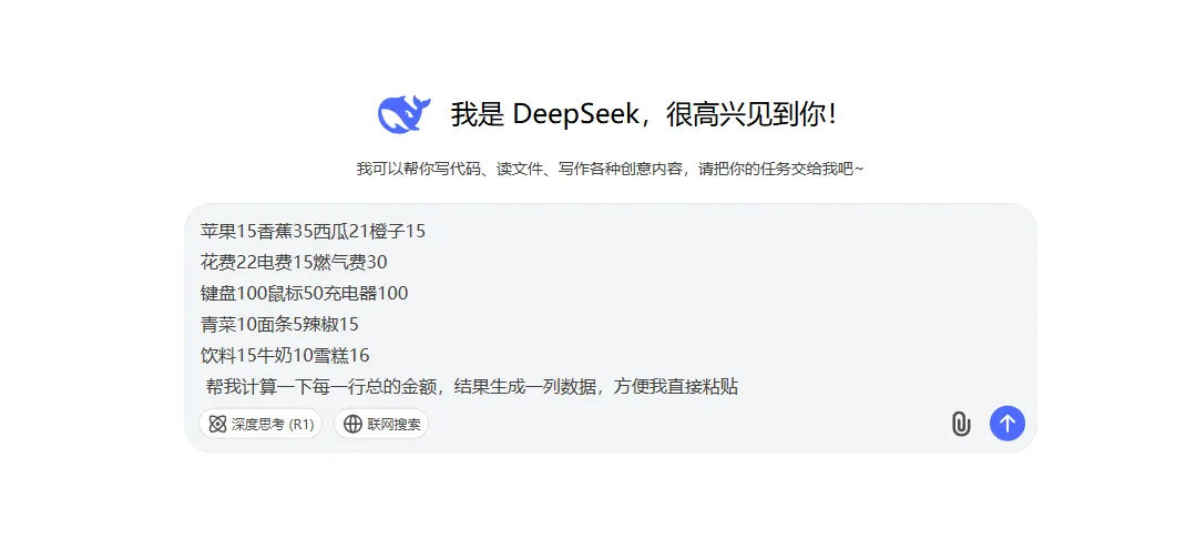 对于一些比较复杂的数据计算,数据提取,数据清洗,都可以交给Deepseek试一下, 只要将自己的要求告诉Deepsek即可