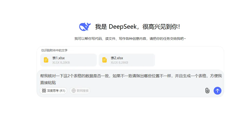 用Deepsek进行数据核对也是可以的,操作非常的简单,只要将需求告诉它即可,月底再也不用一个一个的看表格了