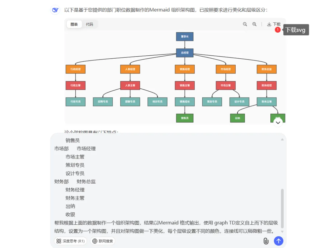 Deepsek不但可以制作架构图,还能制作流程图,本质就是通过Mermaid 代码来绘制图表,下面的案例是一个架构图,大家也可以根据自己的需求来设置。