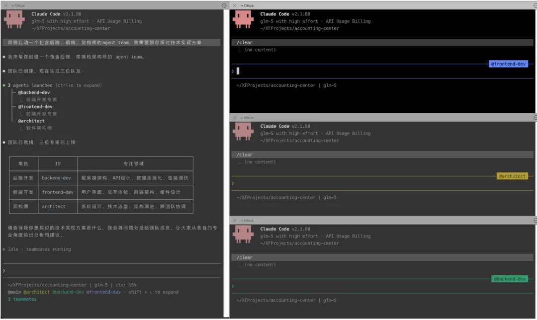 Agent Team 模式下各 Sub-Agent 可以相互通信交流,在完成任务后会将结果汇报给主 Agent,主 Agent 再统一协调和整合,整个过程 Token 消耗非常快。实际使用中要根据任务复杂度选择合适的方式——简单任务用单个 Sub-Agent 就够了,只有多模块并行开发这类场景才值得启动 Agent Team。