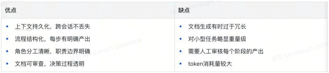每个角色的输出就是下一个角色的输入,形成文档链。任何时候重启 AI,读这些文档就能从断点继续。