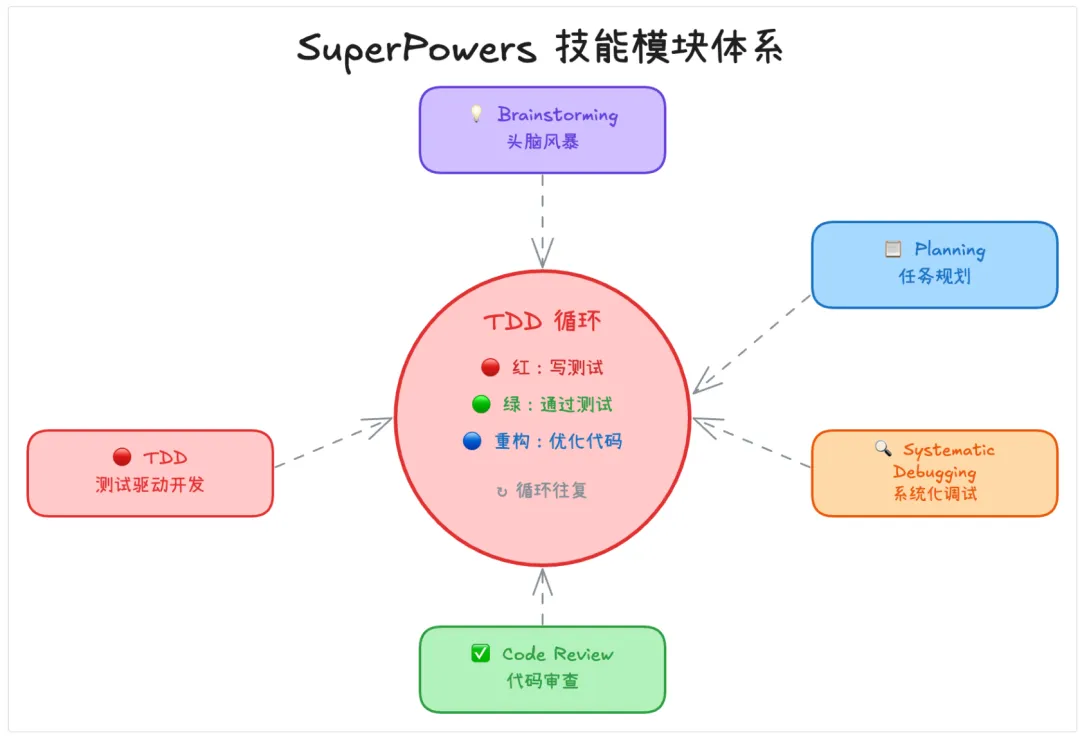 • SuperPowers 负责”纪律”:TDD → 系统化调试 → 代码审查