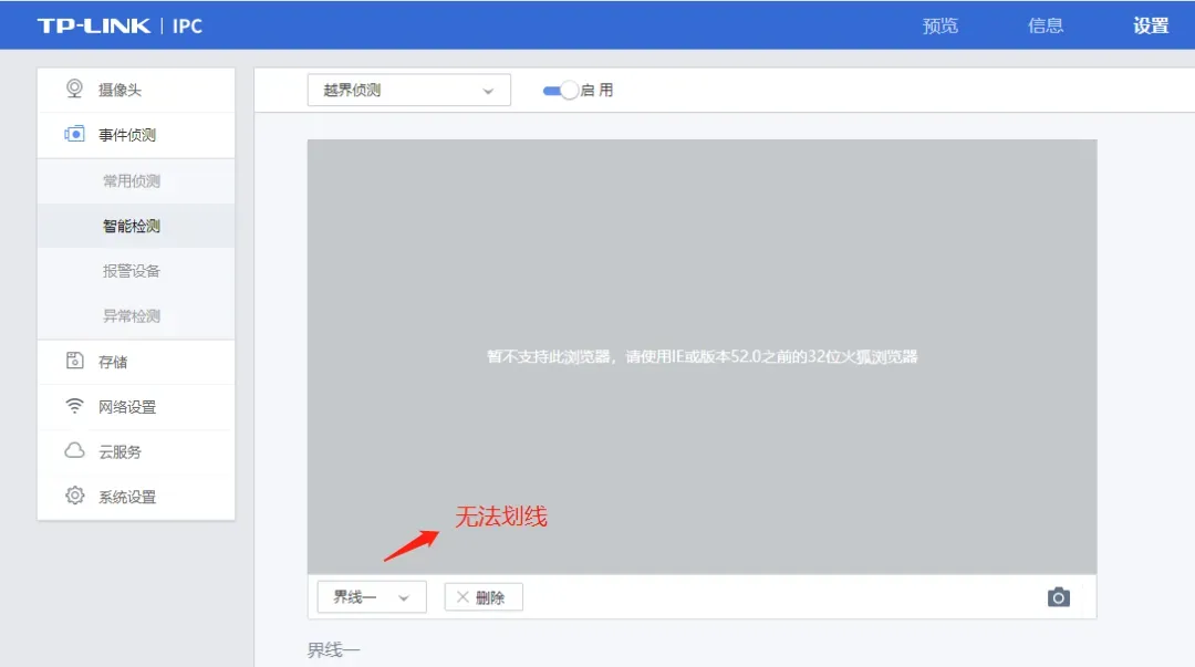 我们在使用摄像头的时候,常会用电脑Web来管理和访问摄像头,进行短时间的预览和配置。但通常进入Web管理页面后不能直接预览,提示“暂不支持此浏览器,请使用IE或火狐浏览器进行预览”。或者对事件侦测进行配置,想要在预览画面上进行绘制线条的时候发现没有预览画面,无法配置事件侦测。遇到以上的情况,需要先下载指定的浏览器,再安装插件,重启浏览器,过程费时又费力。