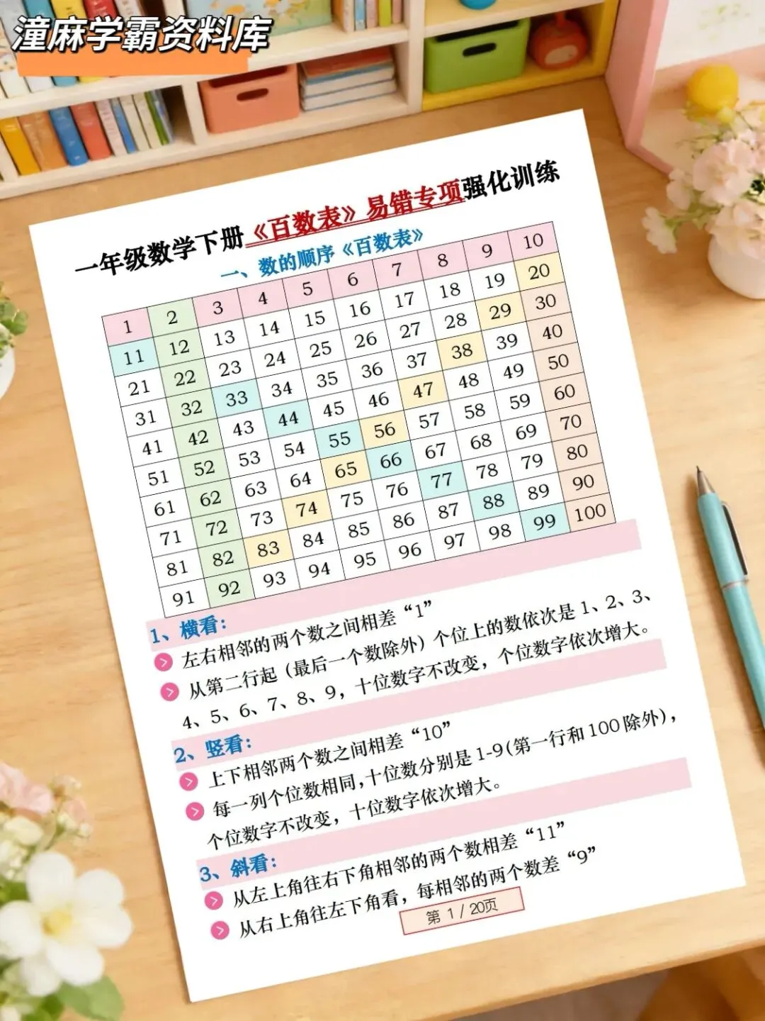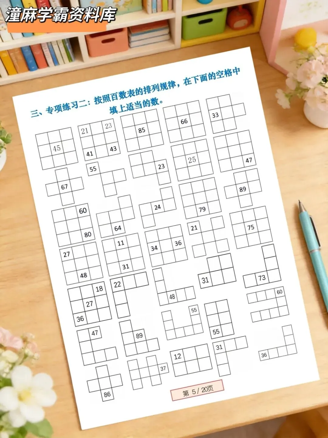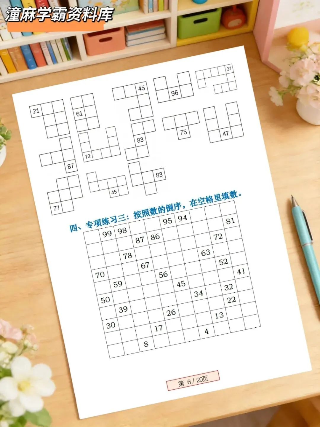 这份《百数表》易错专项强化训练,是专为一年级孩子量身打造的数学练习,涵盖数的顺序规律、专项填空、倒序填数等核心题型。
