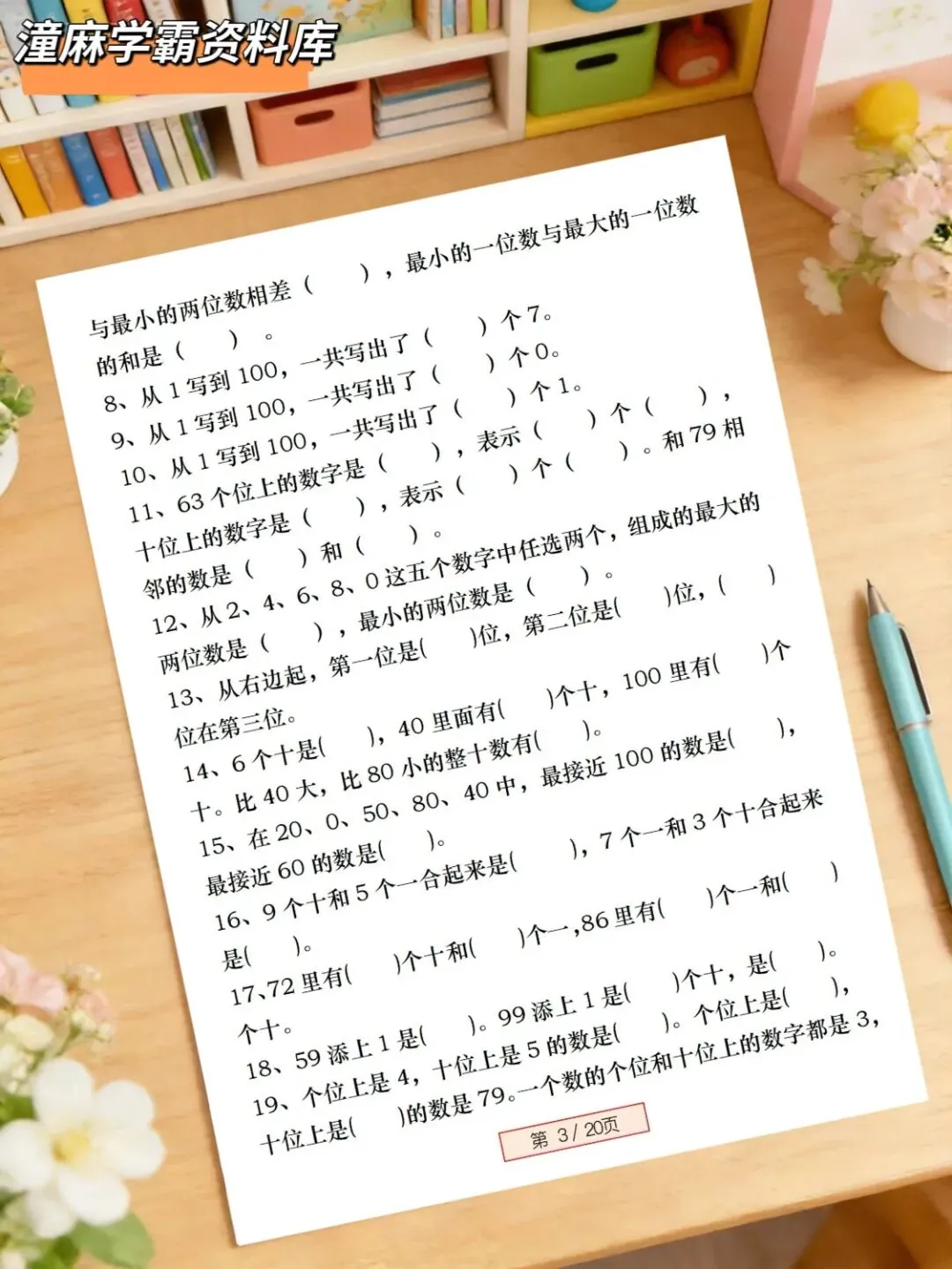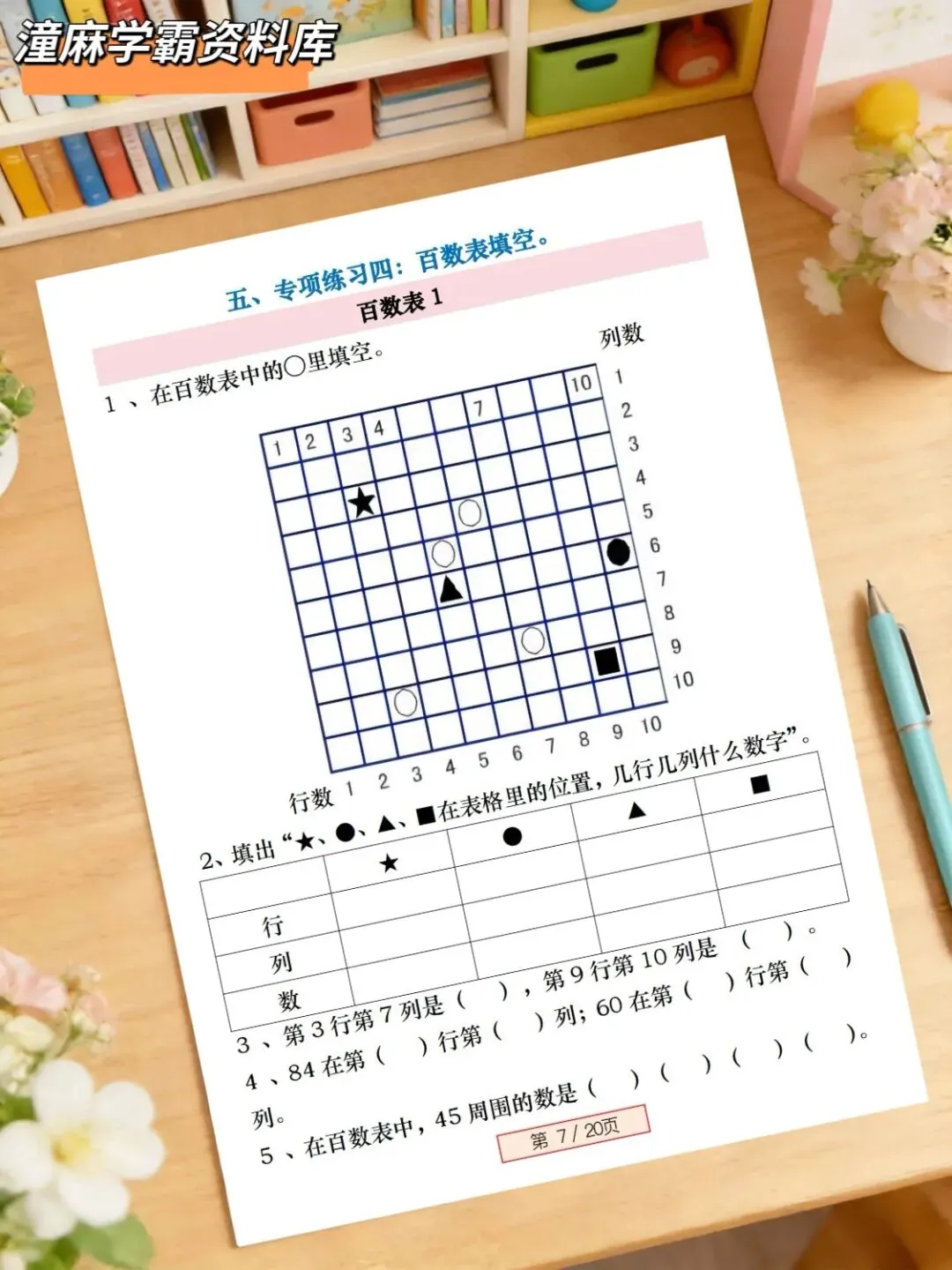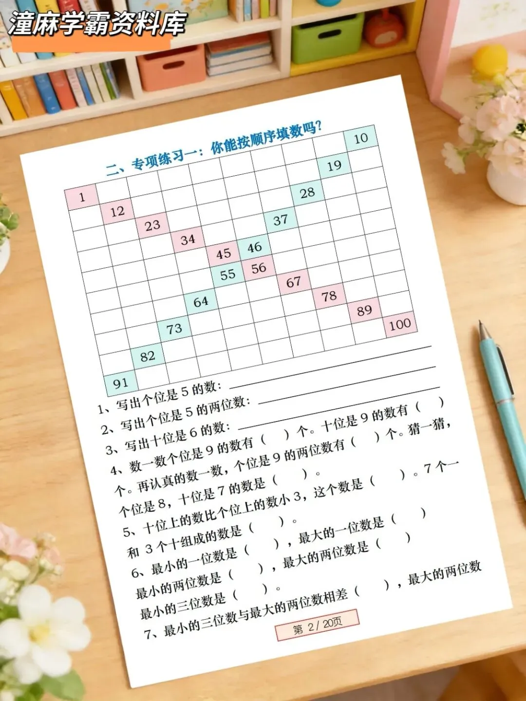 这份《百数表》易错专项强化训练,是专为一年级孩子量身打造的数学练习,涵盖数的顺序规律、专项填空、倒序填数等核心题型。