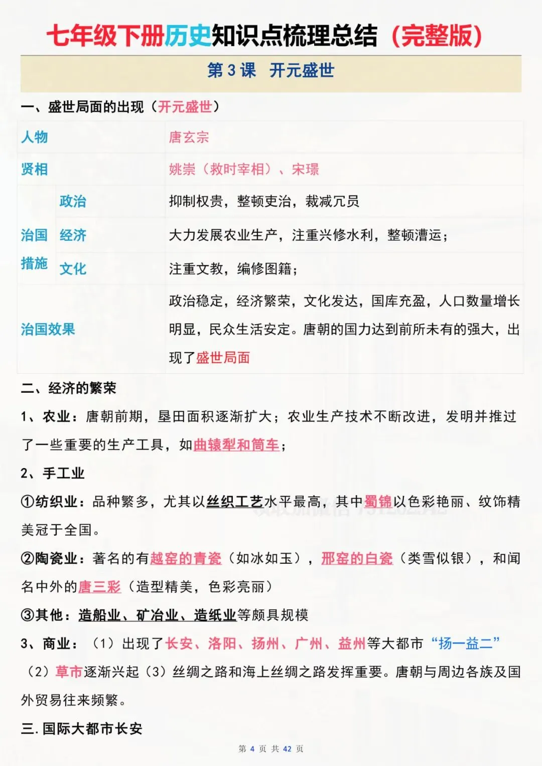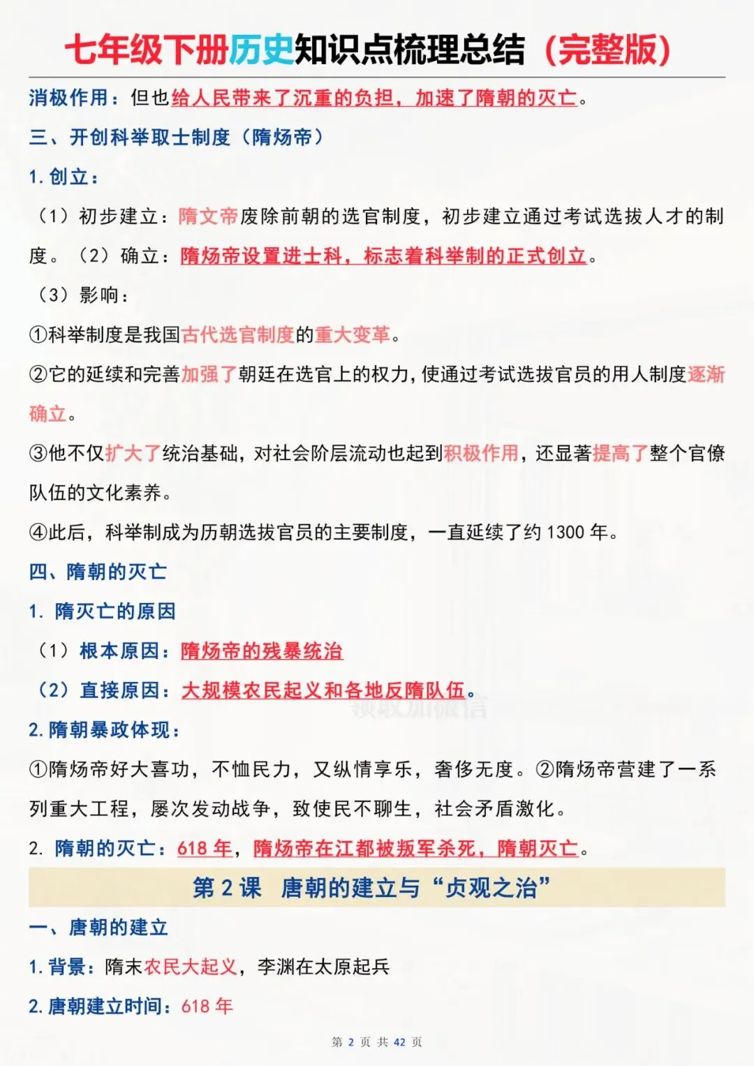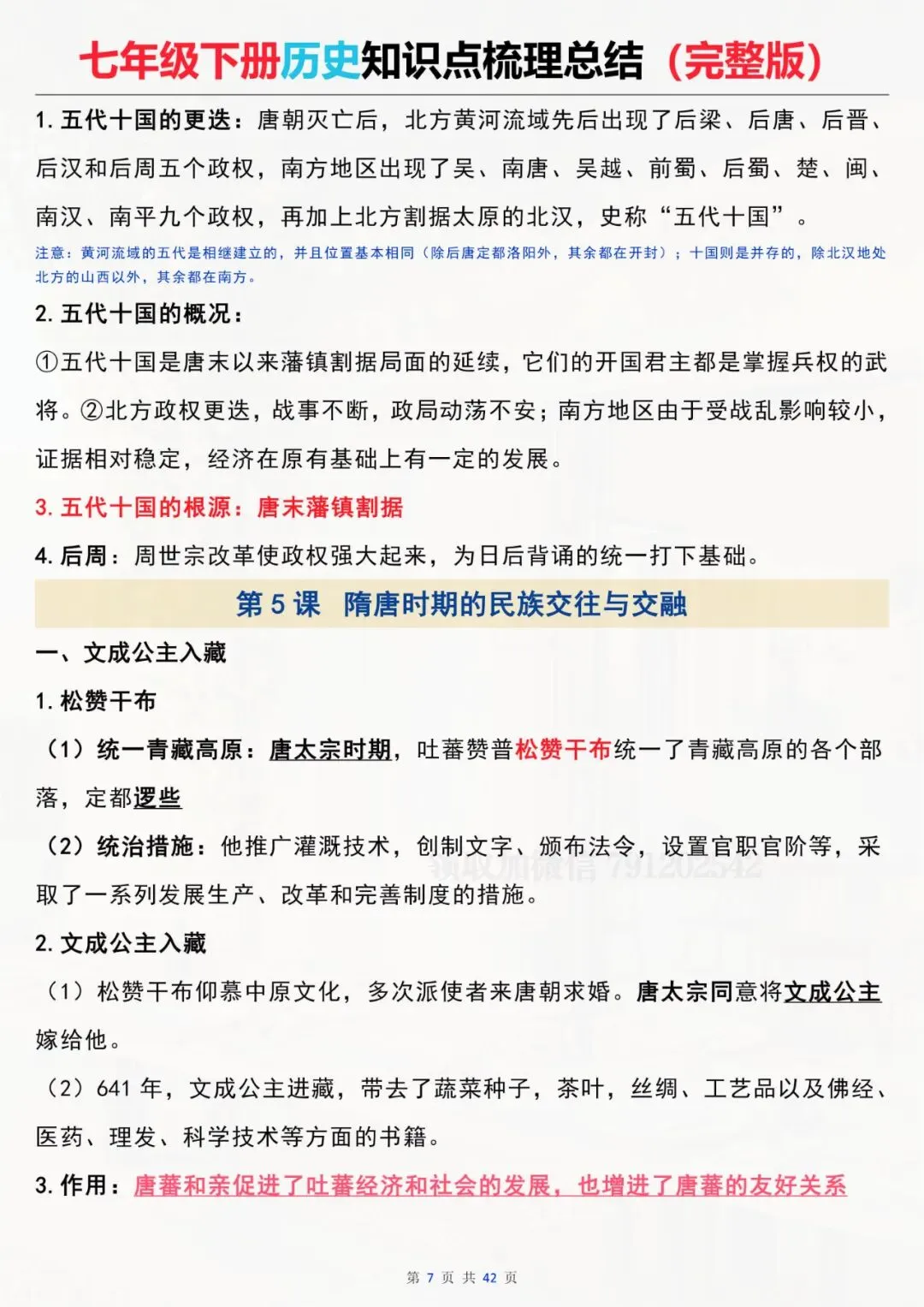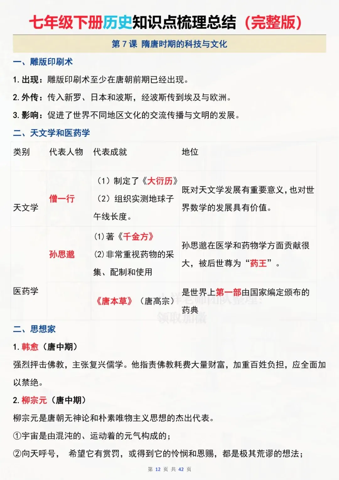 七年级下册历史 全册知识点总结 电子版可打印