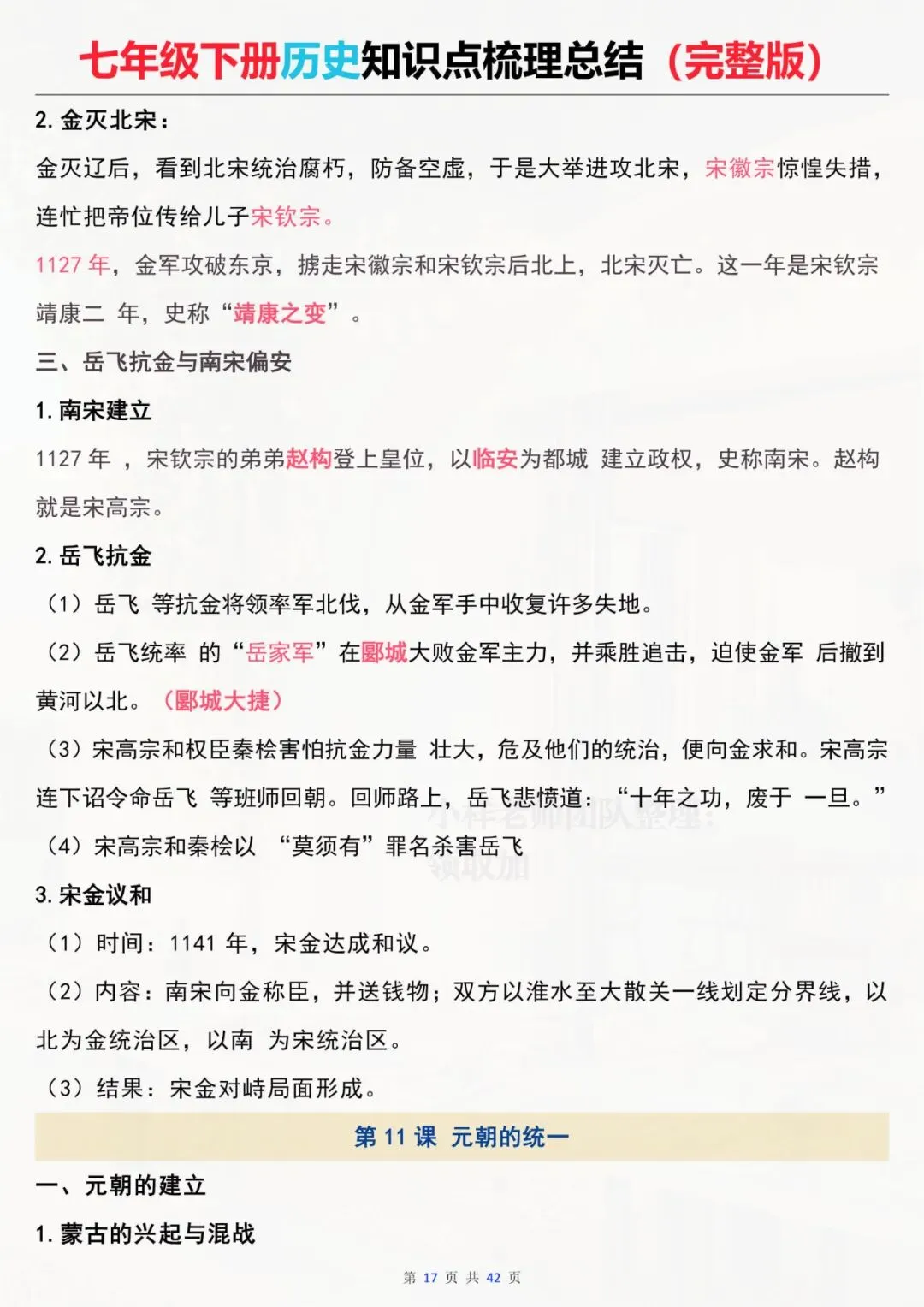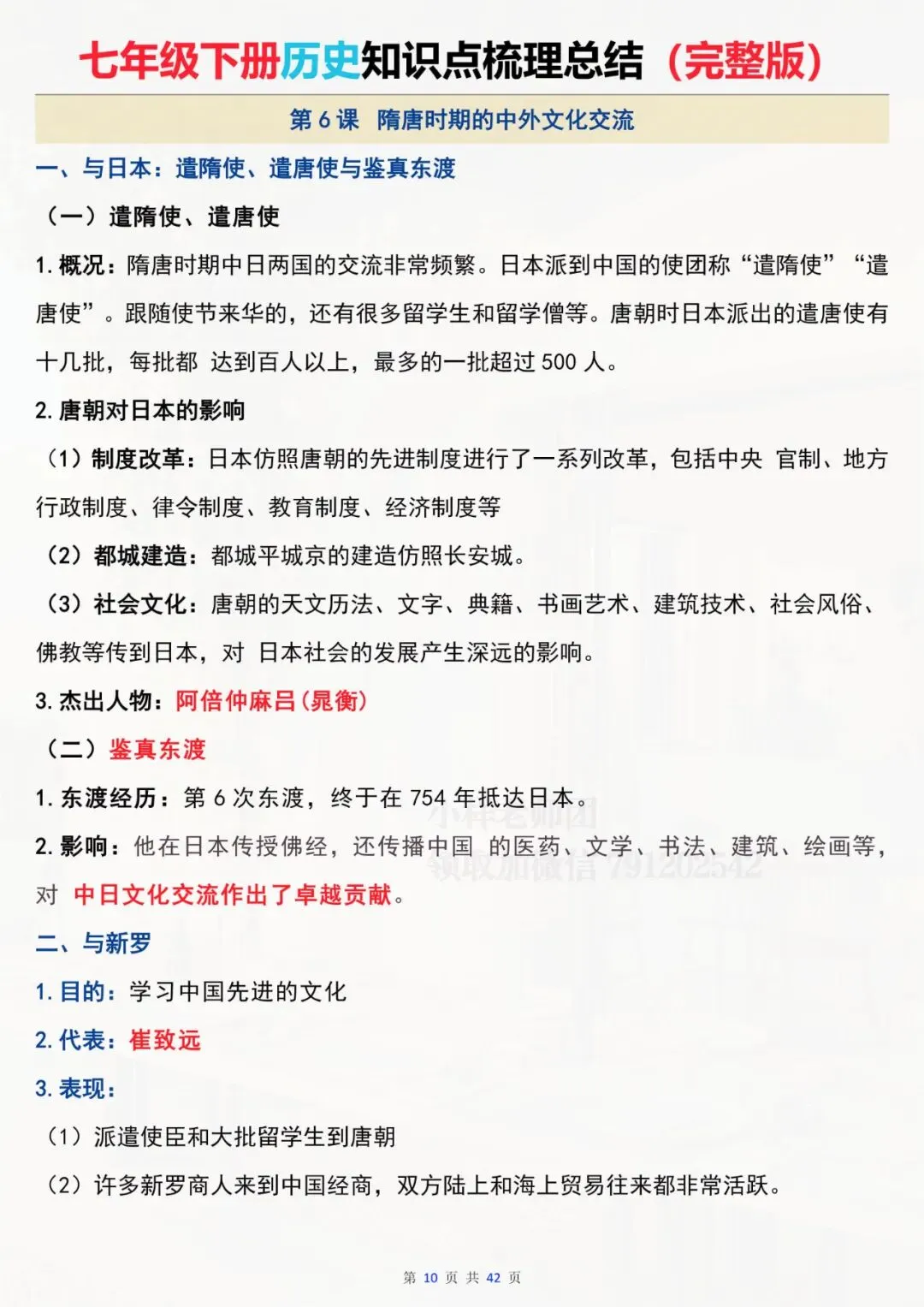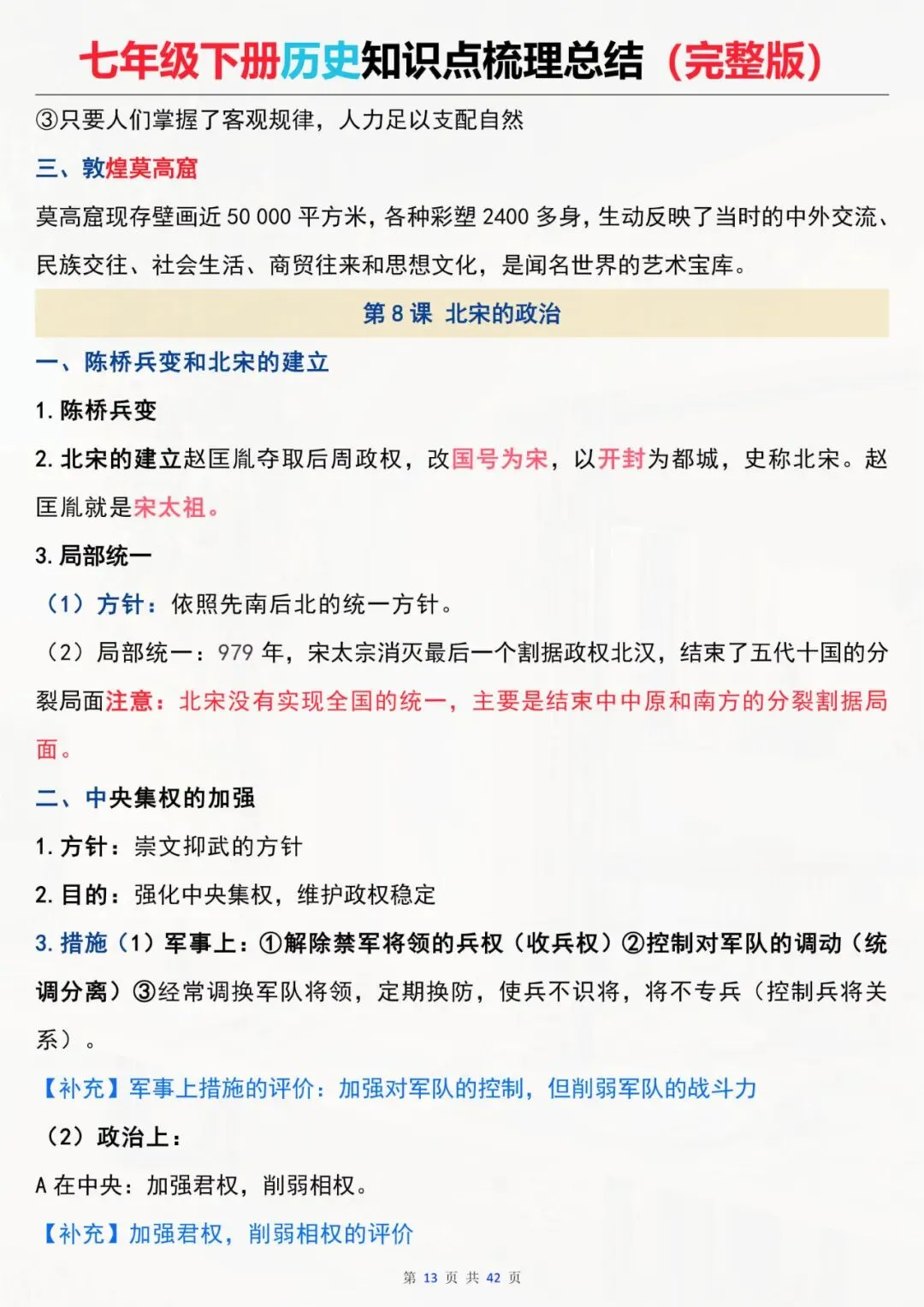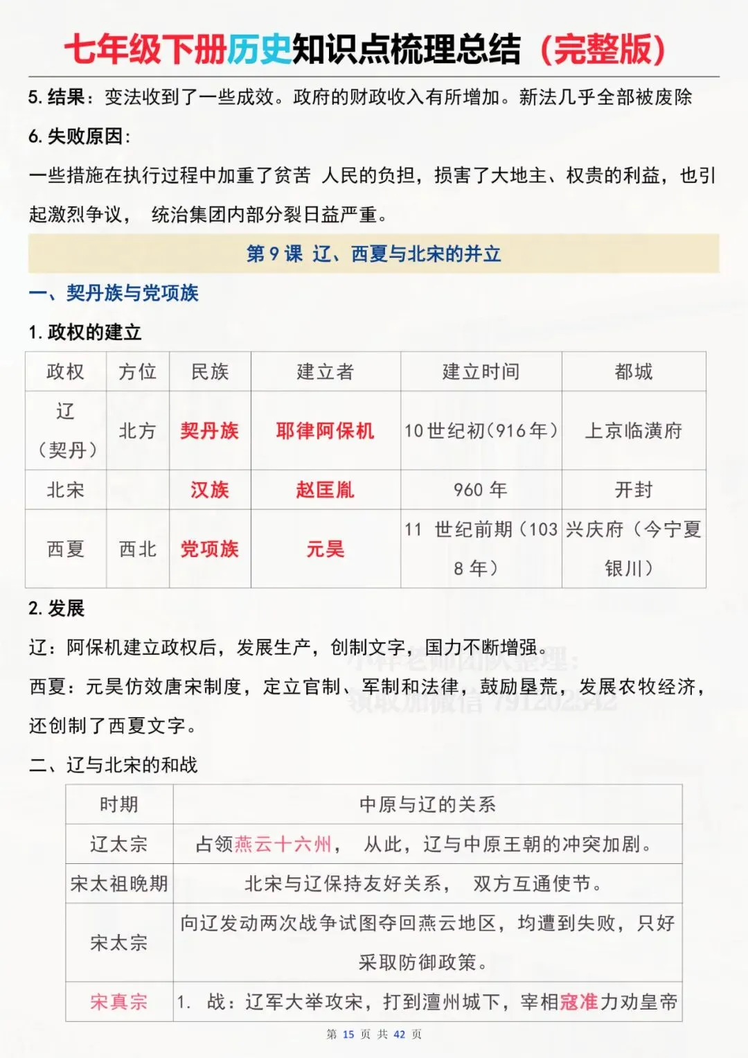 七年级下册历史 全册知识点总结 电子版可打印