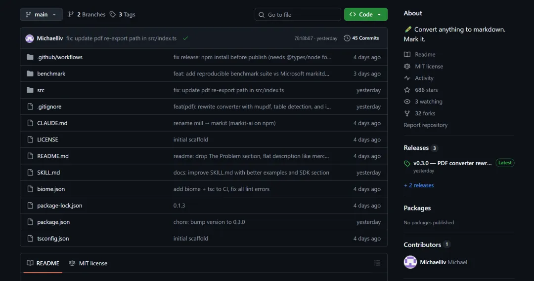 给 AI 喂数据、整理知识库、写文档,第一步往往是把各种格式转成 Markdown。以前每种格式要找一个工具,现在 Markit 一个搞定——什么格式都能转,一条命令就行。