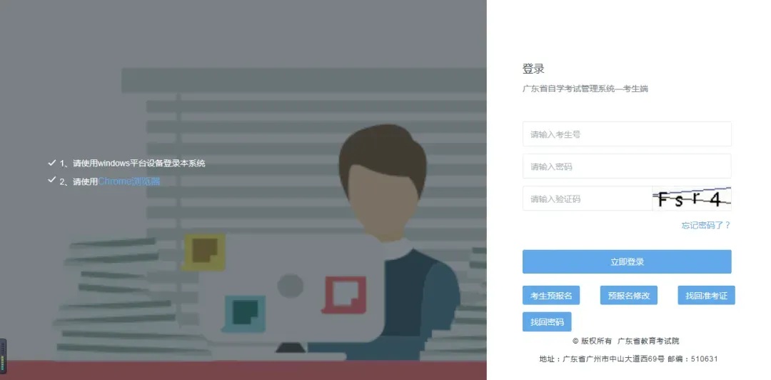 登录广东省自学考试管理系统: