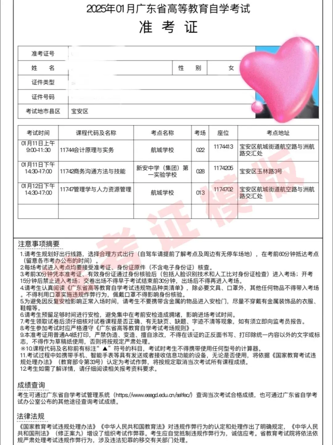 请同学们用A4纸打印准考证,并认真核对个人信息。考前认真阅读准考证中的考试时间、地点、考试注意事项等内容。
