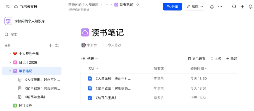 第一步:新建一个 读书笔记 | 2026 的文档。