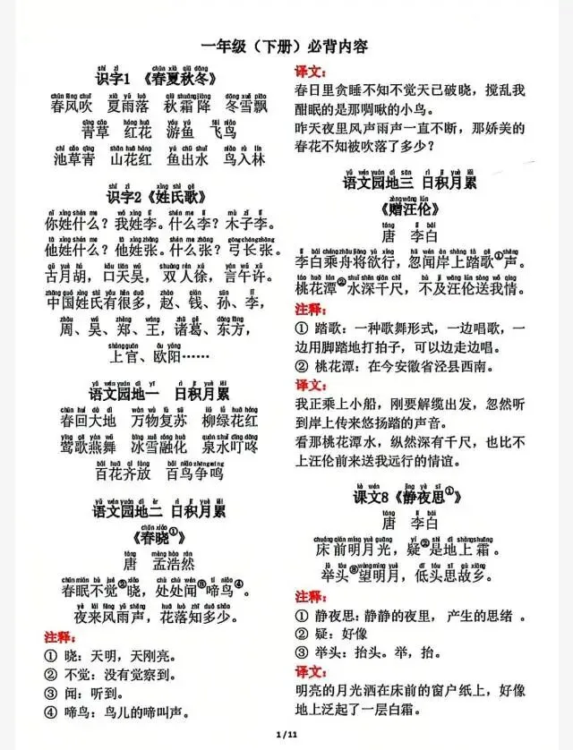 一年级下册必背内容.pdf