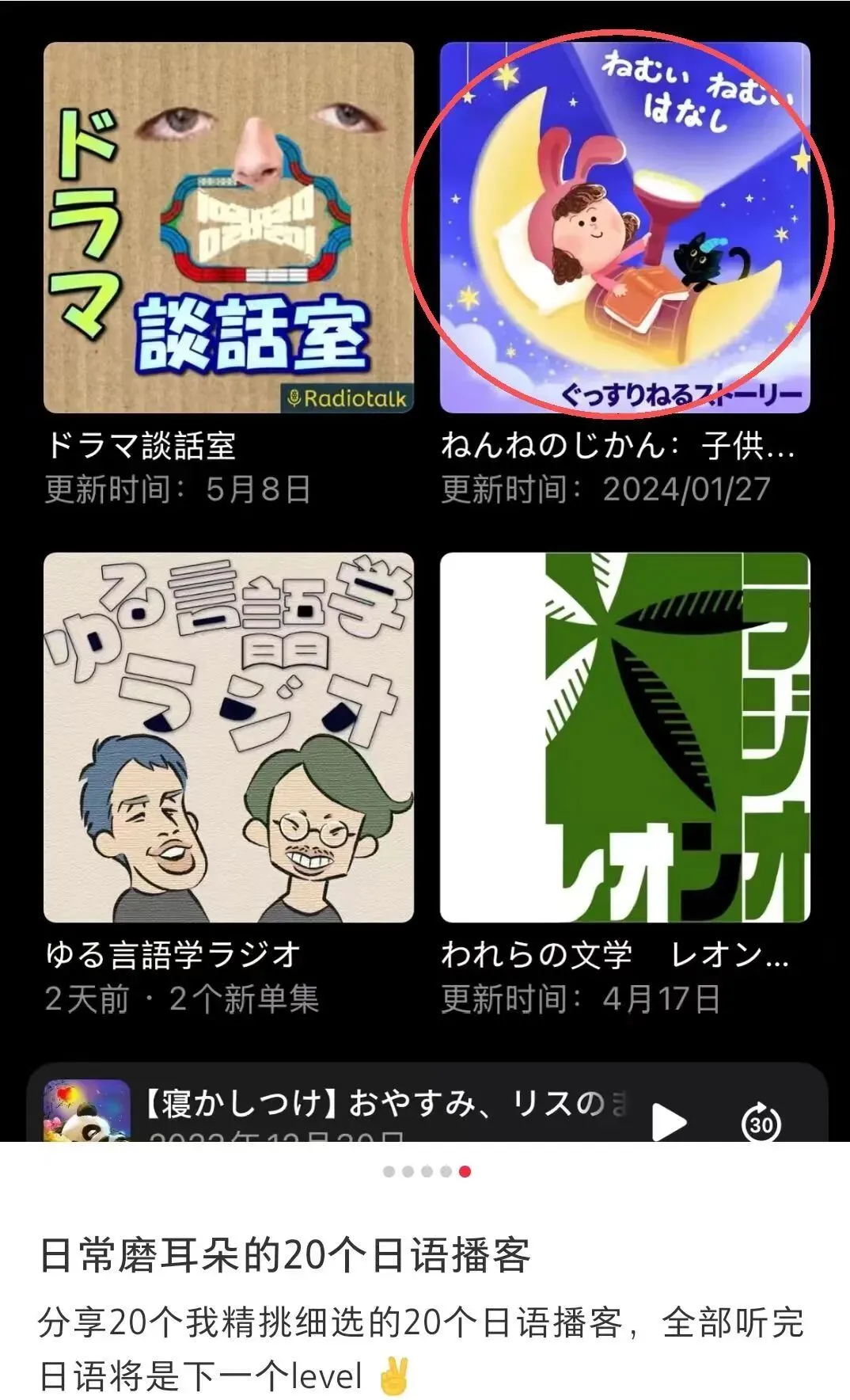 选自播客:ねんねのじかん:子供の寝かしつけ|読み聞かせ|ベビーバス 小红书上也有推荐