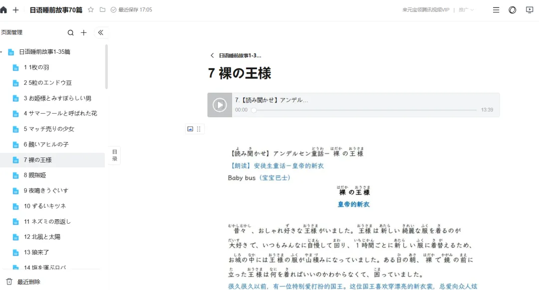日语播客!日语睡前故事电子版 70篇 假名标注 中日双语!日语初级必备!