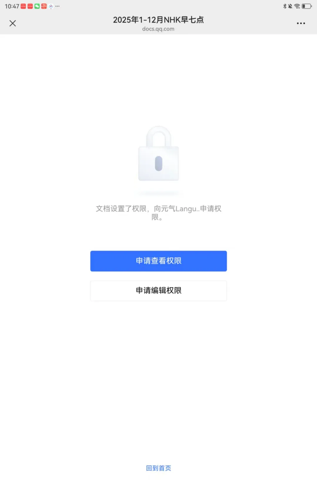 下面是下单后的文档领取和查看指南 1.下单后大家会受到一个链接 复制链接 到微信打开并按提示登录 2.【申请查看权限】 本文档的【申请编辑】权限已关闭,大家不用申请哦