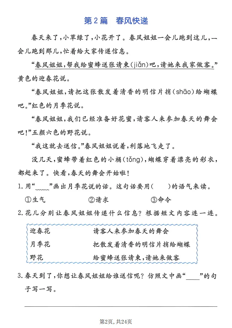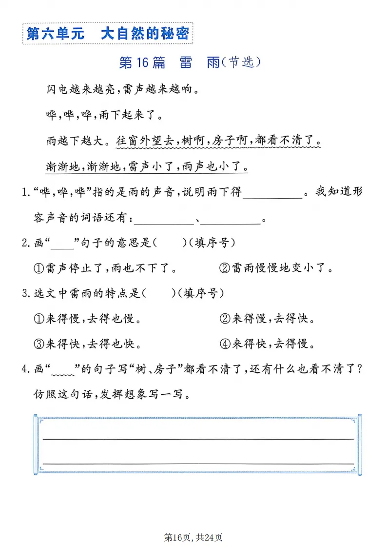 二年级(下)语文阅读理解专项,电子版可打印 点击上方关注领取更多学习资源 新一下语文1-8单元生字词默写单(含答案16页),电子版可下载,同步教材每课内容。需要的家长抓紧打印出来,让孩子用起来。 (温馨提示:文末有完整电子版领取方式) 免费领取电版 关注公众号:“博学小课堂” 文章文末:点赞+再看 发送关键字:260331 说明 教辅在精不在多 ,如果觉得资料好,孩子需要正常使用 ,建议购买正版图书本公众号分享教辅资料,是为了给大家介绍、展示教辅资料的内容和特点,推荐大家购买正版教辅。 为了更好地展示资料的情况,我们可能会用到一些资料的截图、官方的样书,或者网络上公开的电子资料,如果权利人认为这些展示可能会侵害到您的权利,请直接告知我们,我们会立刻删除。