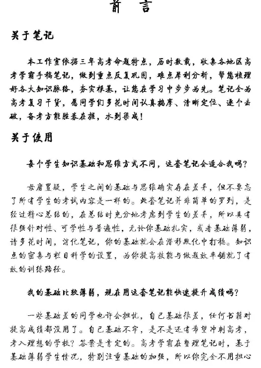 内容来源:团队收集了各地区高考学霸的原始手稿笔记,结合近三年高考命题规律,历时多年整理而成。 -