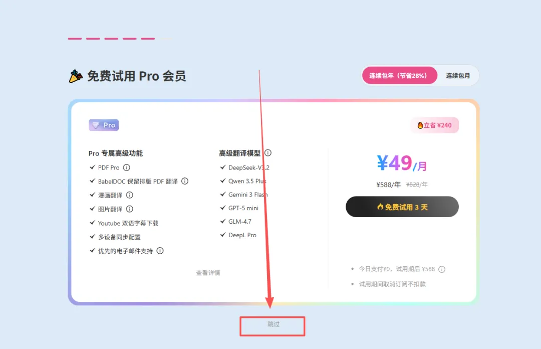 • Pro 版:68元/年,解锁 AI 高级引擎额度,(不差钱的)推荐升级