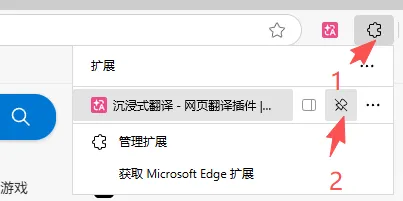 安装完成后,点击浏览器右上角「拼图」图标 → 找到「沉浸式翻译」→ 点击📌图钉图标固定到工具栏。