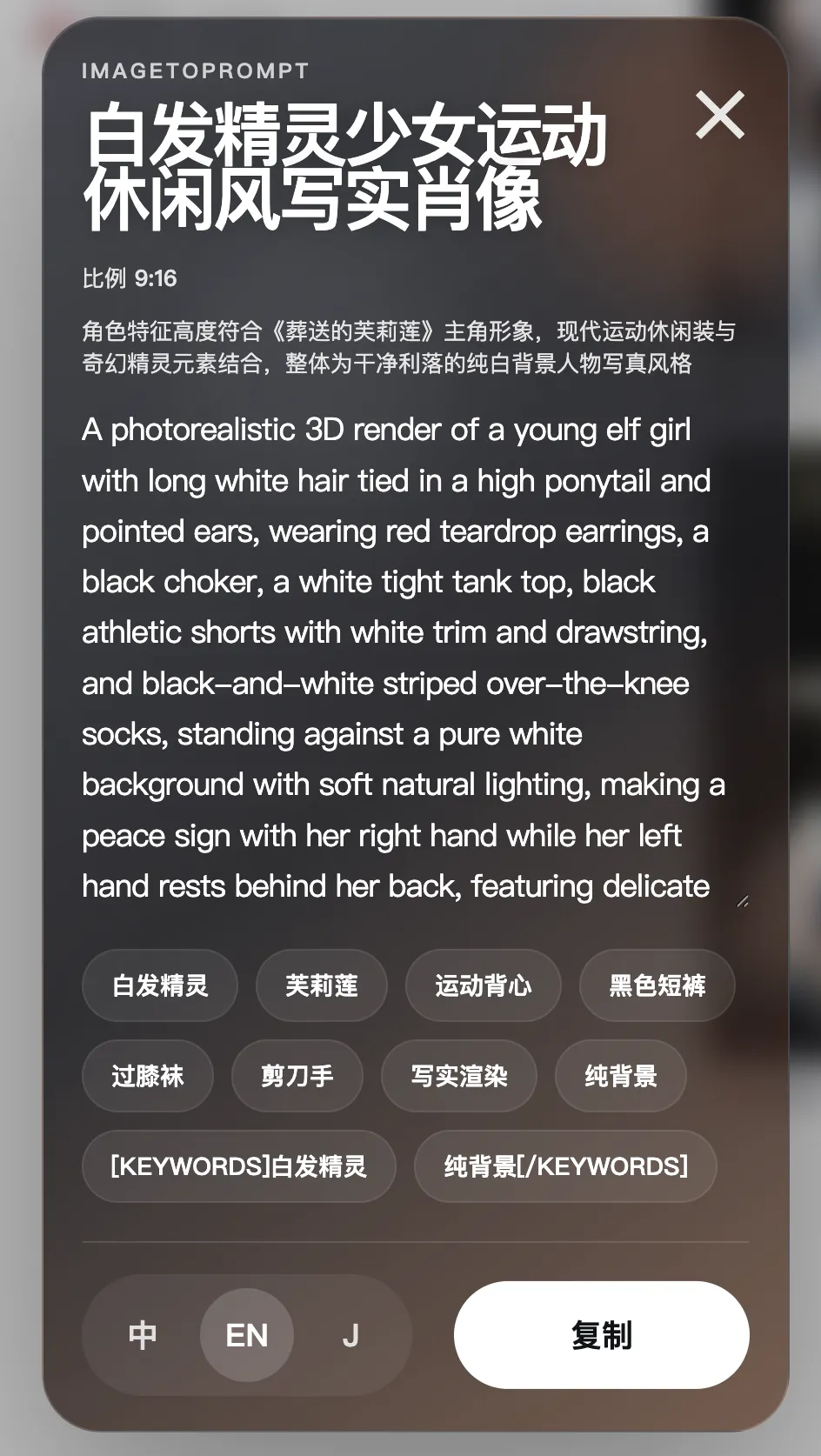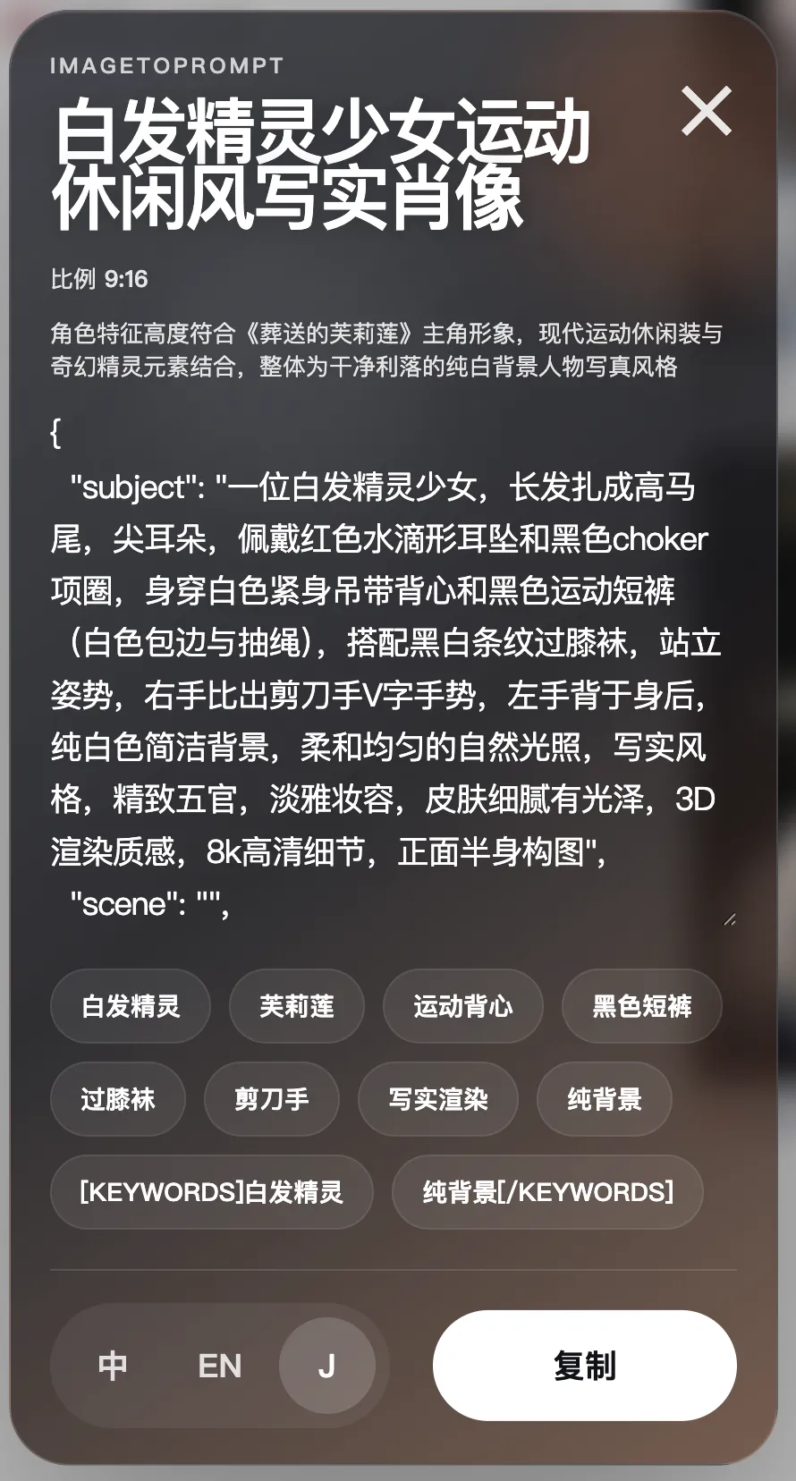 3,下面的三个小标签,可以切换中,英,J 的提示词内容