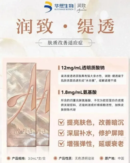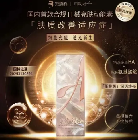 润致·缇透是国内首款合规抗衰亮肤复合型水光针,其研发与生产依托华熙生物科技股份有限公司(下称华熙生物)。