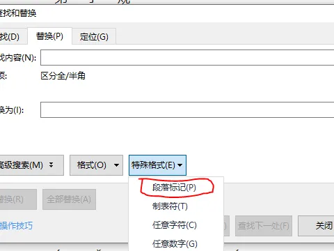打开文档,按下快捷键 Ctrl+H 调出「查找和替换」,选择特殊格式→段落标记