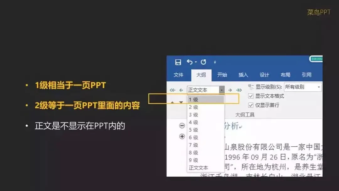 设置为2级,相当于一页PPT标题下的内容