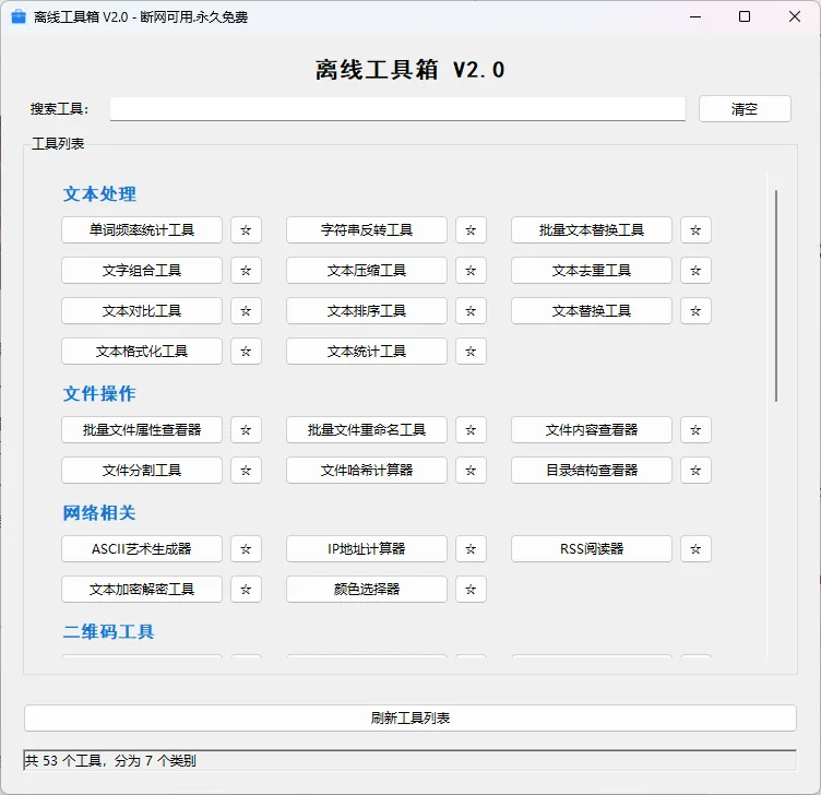 神器软件推荐,低调收藏! 153 期 | 一款文件不大 工具又多的工具箱.离线可用,断网情况下可正常使用,暂时整合了53个小工具~