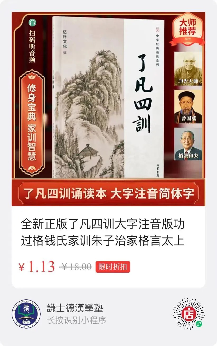 《心经金刚经》《了凡四训文昌帝君阴鸷文》《传习录》《雨花家训》