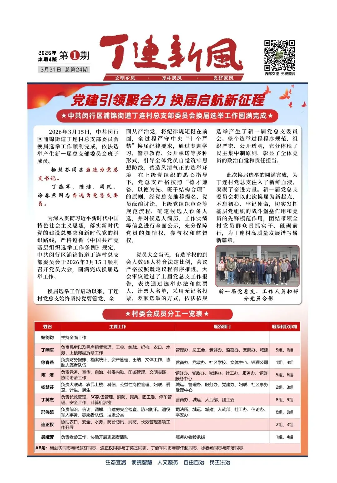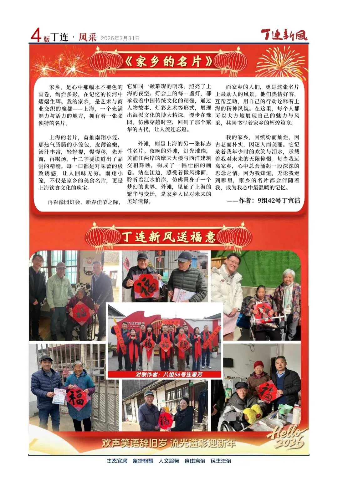 《丁连新风》于2020年4月30日正式创刊,每季1期。我们用一份刊物、用亲切的文字、用身边的影像,记录丁连村的点滴变化,汇聚丁连村的百姓心声,提炼丁连村的民俗家风,凝聚丁连村的精神力量。