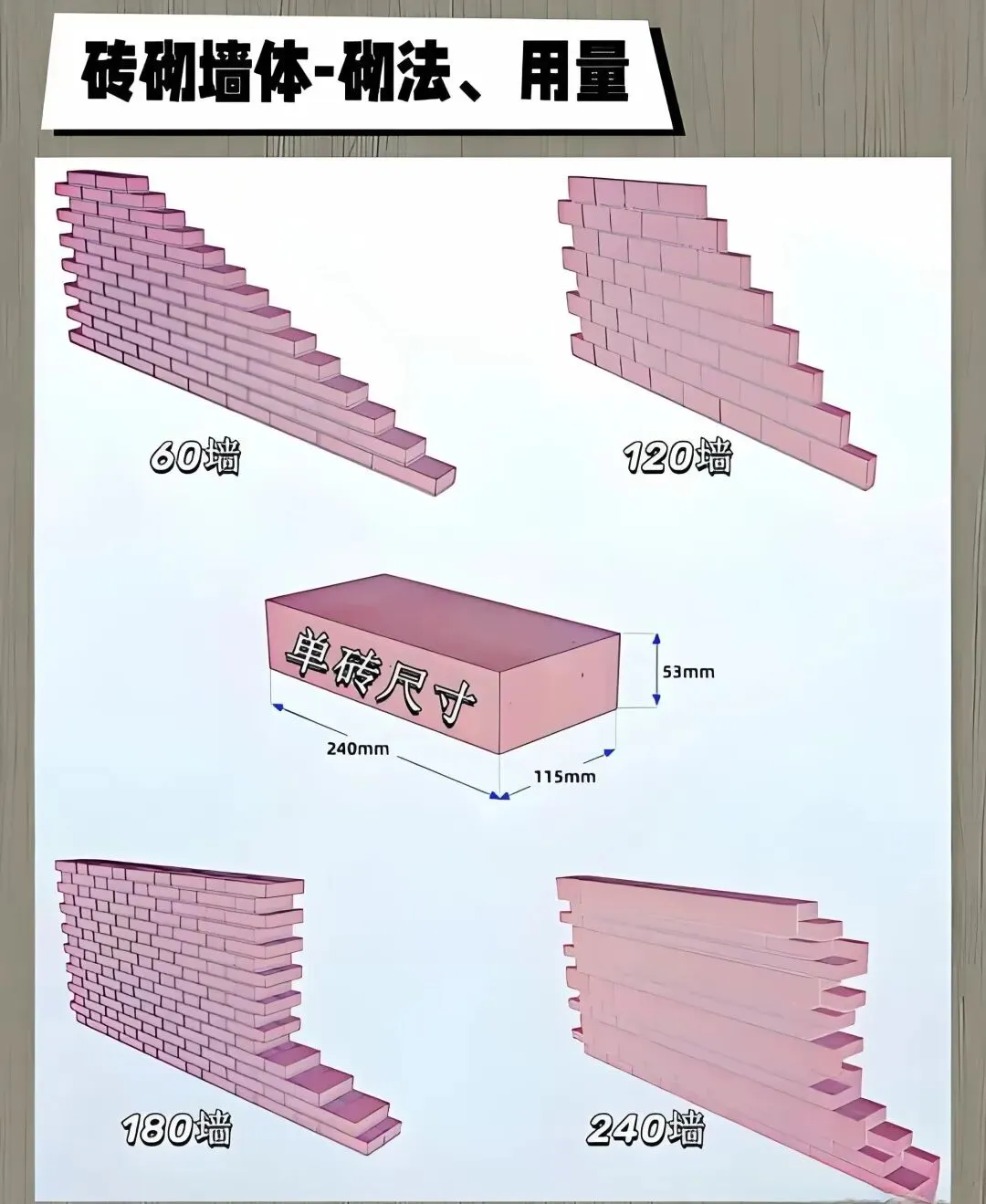 24墙:厚度约240mm,自建房外墙首选,抗震、承重、隔音,就是占空间。