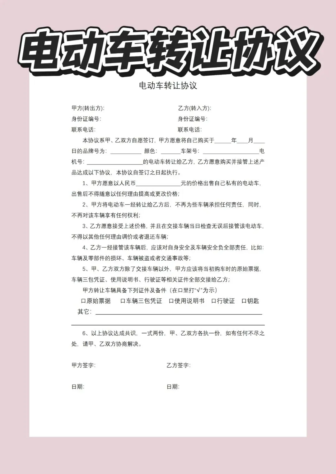 需要【电动车转让协议模版】