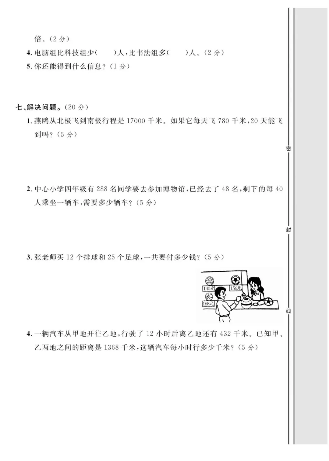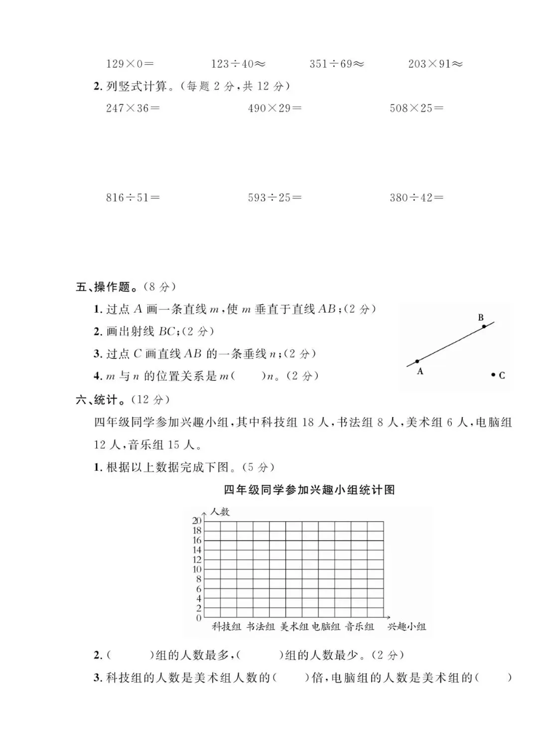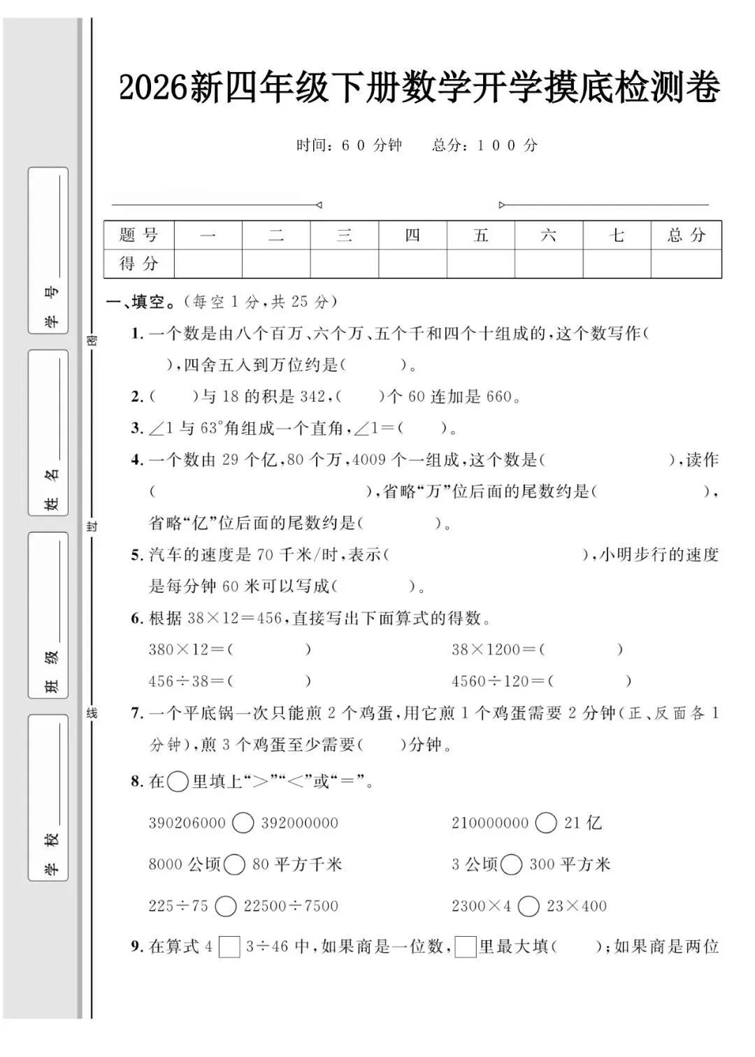 四年级数学下册模拟检测卷