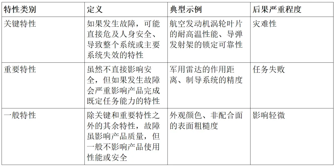 基于功能分析和FMEA的结果,按照特性对产品安全、任务完成度的影响程度,将特性划分为关键特性、重要特性和一般特性。