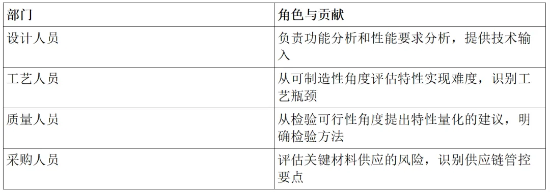 最佳实践:成立由设计、工艺、质量、采购等部门人员组成的特性分析小组,共同参与特性的识别与分类。
