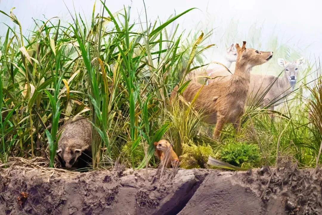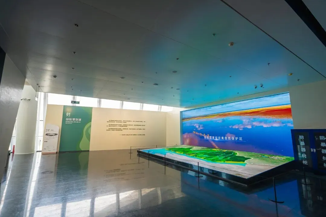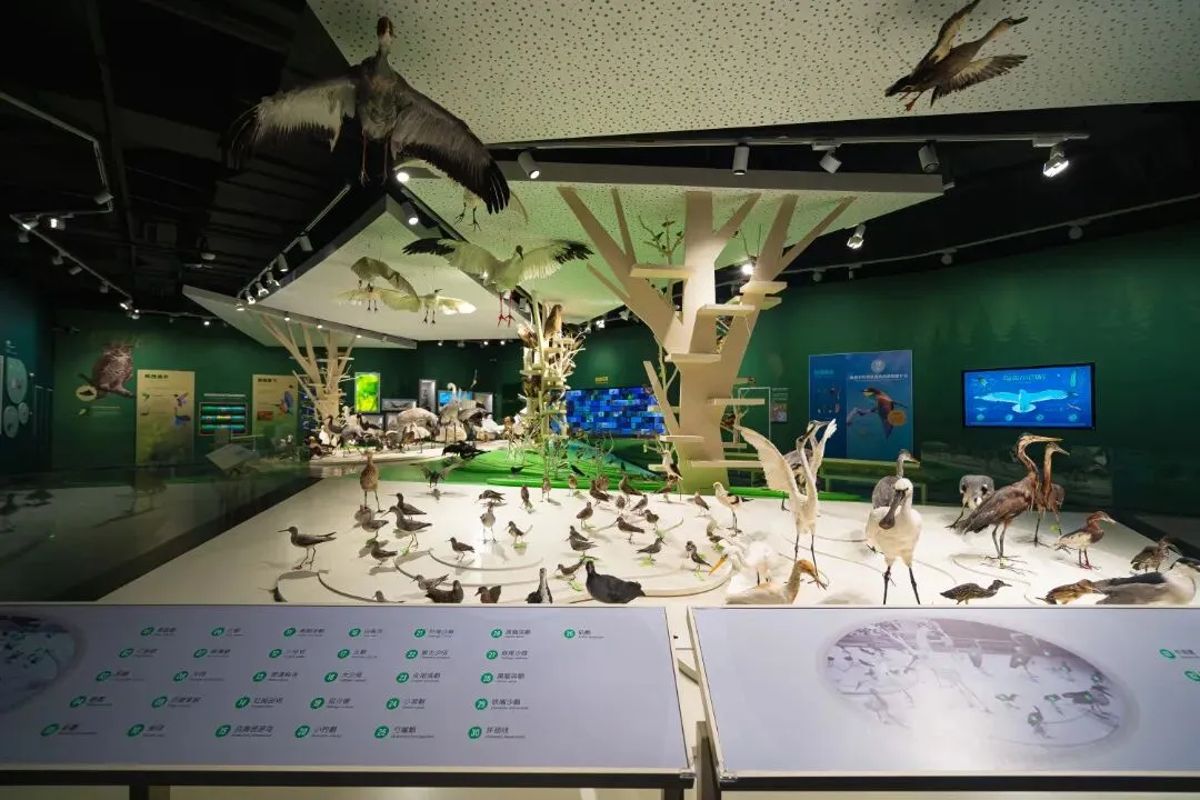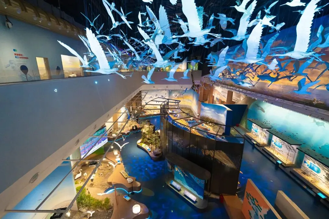 麋鹿的灵动、丹顶鹤的优雅、447 种候鸟的迁徙路线……通过沉浸式展项,近距离观察鸟类及底栖生物的细节。