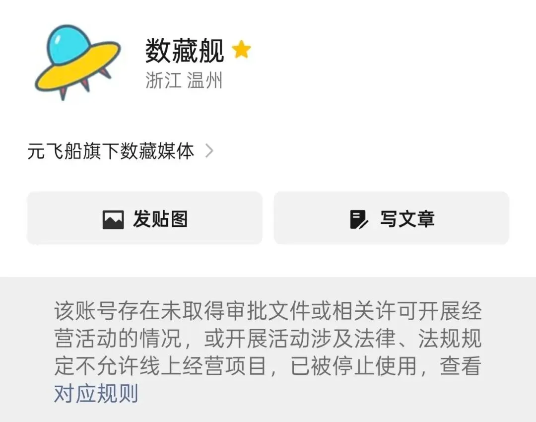 「数藏舰」封号情况说明
